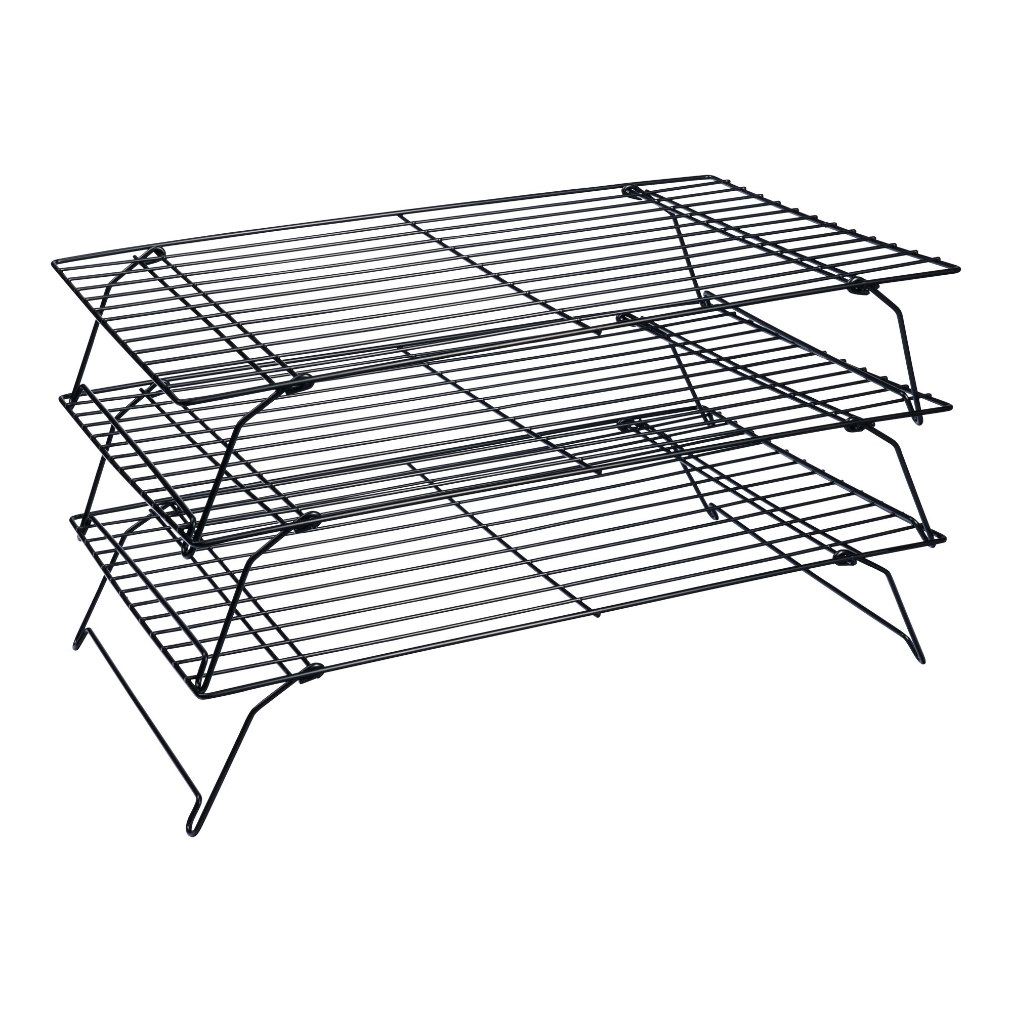 Die Plätzchen-Bande kommt hinter Gitter! Oder genauer gesagt: darauf! Denn so kühlt Gebackenes schneller ab. Das raffinierte Gestell ist im Handumdrehen aufgebaut und bietet Platz für 3 Kuchenböden oder Ihr köstliches Weihnachtsgebäck.
