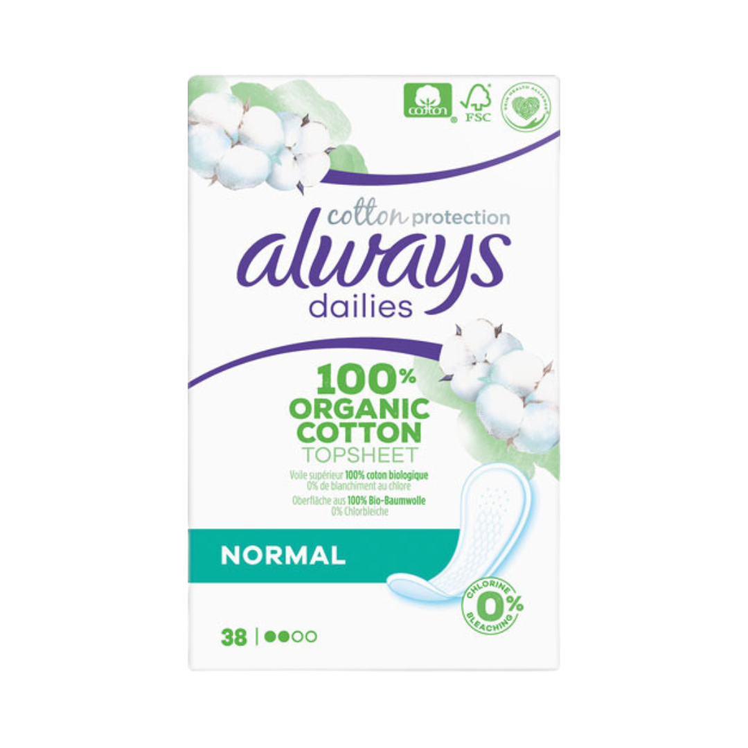 Always dailies Cotton Protection Normal, Oberfläche aus 100 % Bio-Baumwolle, Slipeinlagen, 38 Stück Netto Füllmenge Bruttogewicht 99.626 Gramm,Nettogehalt 38.00 Stück,Nettogehalt 38.00 Anzahl Allergene Ursprungsland DEUTSCHLAND, BUNDESREPUBLIK Marke ALWAYS Hersteller Name: Procter & Gamble Austria – Zweigniederlassung der Procter & Gamble GmbH,Adresse: Wiedner Gürtel 13, 1100 Wien