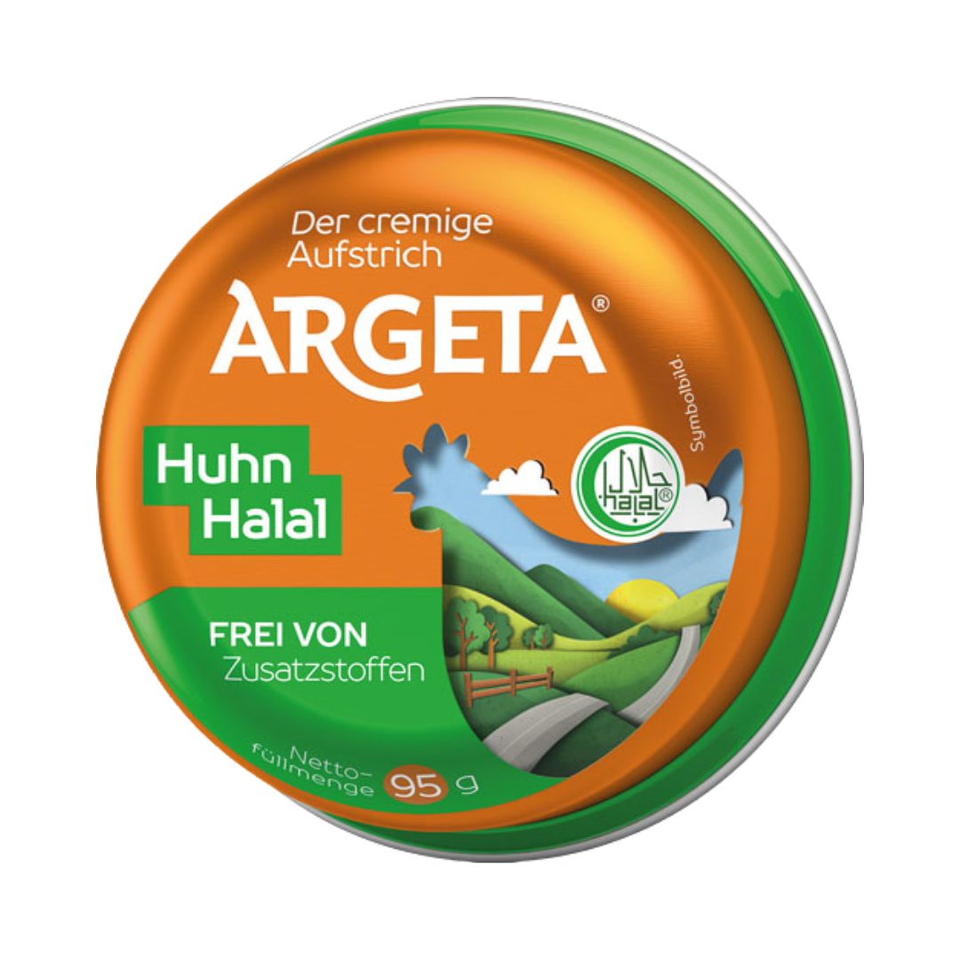 Argeta Huhn HALAL, Aufstrich, glutenfrei AUFSTRICH MIT 29% HÜHNERFLEISCH – mit Milcheiweiß Sterilisiertes Produkt Netto Füllmenge Bruttogewicht 103.00 Gramm,Nettogehalt 95.00 Gramm Allergene Kann Spuren enthalten von Eier und -erzeugnisse,Enthält – Ist im Produkt enthalten Sojabohnen und -erzeugnisse,Milch und Milcherzeugnisse Aufbewahrung Aufstrich nach dem Öffnen im Kühlschrank aufbewahren und innerhalb eines Tages aufbrauchen. Zutaten Zutaten: Trinkwasser, gekochtes Hühnerfleisch 29%, pflanzliche Öle (Sonnenblumen, Raps, Soja) in veränderlichen Gewichtsanteilen, MILCHEIWEISS 3%, Hühnerfett, Kartoffelstärke, konzentrierte Hühnerbrühe, SOJAMEHL, Speisesalz, Gewürze, Kräuter, Hefeextrakt, Paprikaextrakt. Kann Spuren von Eiprotein enthalten. Nährwerte pro 100g Unzubereitet 100 Gramm, Energie 1.279,00 kJ, Energie 309,00 kcal, Fett 29,00 g, davon gesättigte Fettsäuren 3,60 g, Kohlenhydrate 2,10 g, davon Zucker 0,50 g, Eiweiß 10,00 g, Salz 1,30 g Ursprungsland BOSNIEN UND HERZEGOWINA Hersteller Name: Atlantic Brands GmbH,Adresse: Am Heumarkt 10, 1030 Wien, Österreich.,Webseite: www.argeta.com
