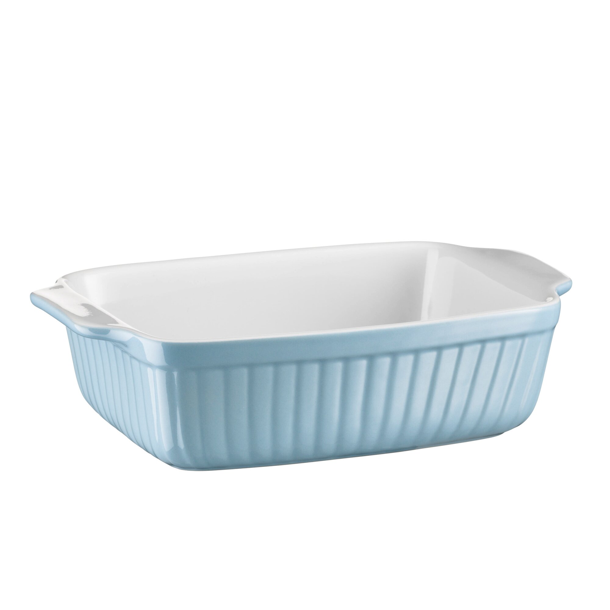 Diese vielseitig einsetzbare eckige Auflaufform aus dickwandiger Keramik macht dank ihres wunderschönen Retro-Designs nicht nur in Ihrem Backofen, sondern auch auf Ihrem Esstisch eine hervorragende Figur. Die Auflaufformen der Serie Kitchen Time sind aus hochwertigem Steinzeug (einer besonders harten Form der Keramik) gefertigt und dadurch äußerst pflegeleicht. Im Gegensatz zu Glasformen bleibt die Glasur von Keramikformen dauerhaft schön, da keine Lebensmittelrückstände eingebrannt werden. Im Gegensatz zu beschichteten metallenen Formen wiederum enthält glasierte Keramik keine Schadstoffe, die bei hohen Temperaturen ausgasen können. Außerdem ist glasierte Keramik absolut kratz- und schnittfest und leitet die Wärme Ihrer Speisen deutlich langsamer nach außen ab als etwa Aluminium. Bitte beachten Sie: Um eine objektive Vergleichbarkeit sicherzustellen, beziehen sich unsere Füllmengenangaben auf eine randvolle Befüllung. Vermeiden Sie Temperaturschocks, da die Formen ansonsten brechen könnten (etwa, wenn Sie diese direkt aus dem heißen Backofen auf einer kalten Stein-Arbeitsfläche platzieren). Dieses Set wird in einer vielfach auf Bruchsicherheit getesteten Versandverpackung aus umweltfreundlichen Materialien versendet.Abmessungen außen: 25,5 cm lang, 16 cm breit, 7 cm hochAbmessungen innen: 20,5 cm lang, 15 cm breit, 6 cm hochFarbe: BlauAnzahl: 1Breite in cm (bp): 16Größe: 25,5 x 17,5 cmHöhe in cm (bp): 7Material: KeramikPersonenanzahl: 2Serie: Kitchen TimeTiefe in cm (bp): 25,5Verzierungsfarbe: Farbig ohne Dekor