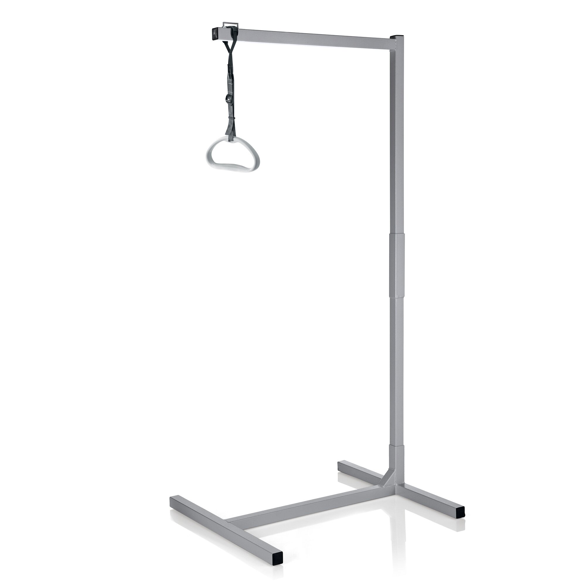 Mit dieser Aufrichthilfe können Sie sich auch im Krankheits- oder Pflegefall sicher im eigenen Bett aufrichten. Sie unterstützt beim Aufrichten aus einer liegenden in eine sitzende Position, hilft aber ebenso beim Anheben des Gesäßes, um eine Bettpfanne zu verwenden. Auch kann der 176 cm hohe Bettgalgen als Sicherungshilfe beim Umsetzen vom Bett in einen Roll- oder Toilettenstuhl dienen. Die Griffhöhe lässt sich an dem Gurt einstellen (1,24 bis 1,33 m vom Boden aus) und damit an die eigene Körpergröße anpassen. Die Aufrichthilfe besteht aus drei Teilen aus stabilem Stahl, die sich einfach zusammenstecken lassen, sodass Sie sie nach Bedarf flexibel einsetzen können. Einzige Voraussetzung: Der Bettgalgen (Standfläche: ca. 83 x 76 cm) braucht eine ebene Stellfläche für einen stabilen Stand. Eine Montage ist nicht erforderlich. Bei Nichtgebrauch lässt sich die Aufstehhilfe wieder in ihre drei Teile zerlegen und platzsparend verstauen.