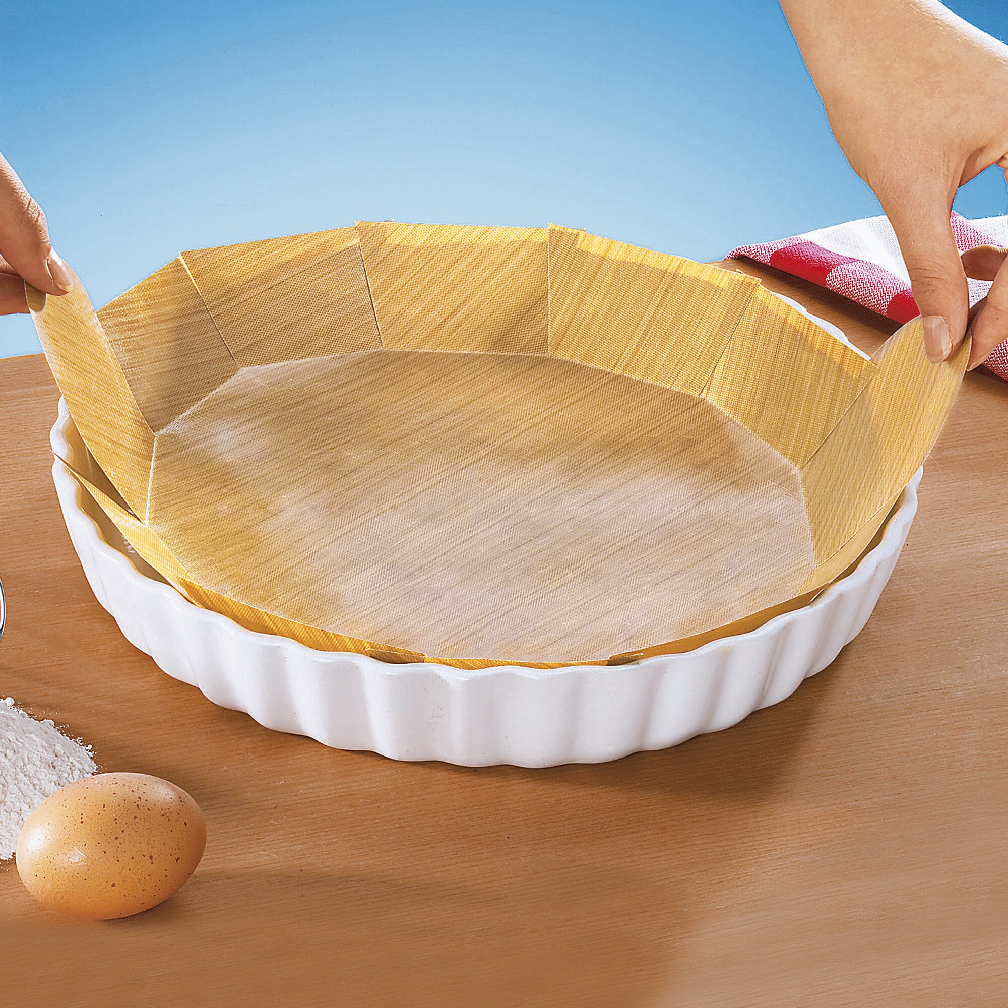 Für perfekte Backwerke.  Mit dieser Spezialbackfolie löst sich jeder Kuchen sicher und vollständig aus der Form. Mit Griffen für noch einfacheres Arbeiten. Ohne Einfetten oder Bemehlen. 100% backflonbeschichtet. Bis +260°C hitzebeständig. Spülmaschinengeeignet.