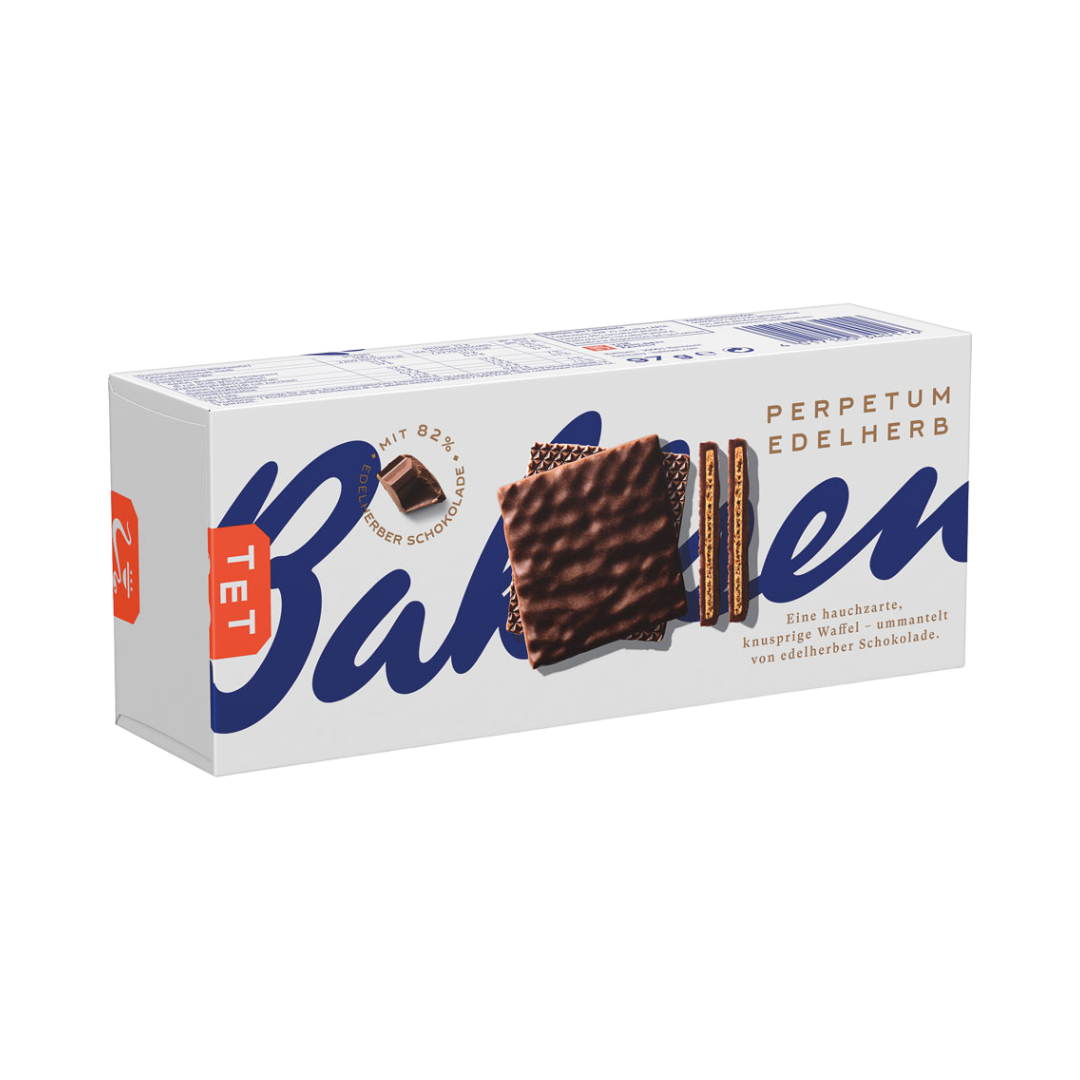 Bahlsen Perpetum Edelherb, 97g Waffel mit edelherber Schokolade (82 %) Netto Füllmenge Bruttogewicht 0.134 Kilogramm,Nettogehalt 0.097 Kilogramm Allergene Enthält – Ist im Produkt enthalten Eier und -erzeugnisse,Glutenhaltiges Getreide sowie daraus hergestellte Erzeugnisse,Milch und Milcherzeugnisse Aufbewahrung Trocken lagern, vor Wärme schützen. Zutaten Zutaten:Kakaomasse, Zucker, WEIZENMEHL, Kakaobutter, Molkenerzeugnis (MILCH), Palmöl, Emulgator: Lecithine, VOLLMILCHPULVER, Invertzuckersirup, HÜHNEREIGELBPULVER, Salz, Backtriebmittel: Natriumcarbonate, Aromen. Nährwerte pro 100g Unzubereitet 100 Gramm, Energie 2.209,00 kJ, Energie 530,00 kcal, Fett 31,00 g, davon gesättigte Fettsäuren 19,00 g, Kohlenhydrate 52,00 g, davon Zucker 35,00 g, Ballaststoffe 6,70 g, Eiweiß 7,30 g, Salz 0,08 g Ursprungsland DEUTSCHLAND, BUNDESREPUBLIK Hersteller Name: BAHLSEN,Adresse: 30001 HANNOVER