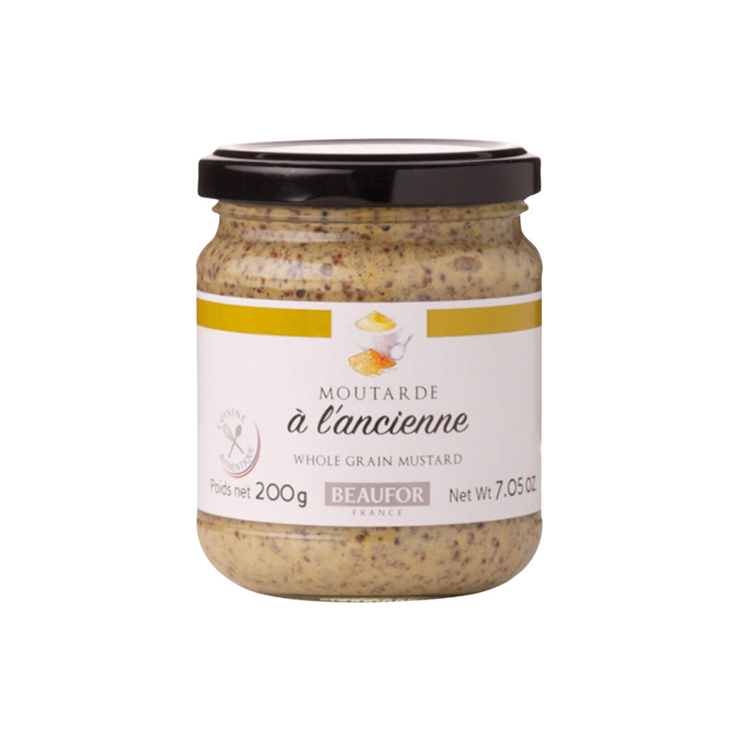 Beaufor Dijon-Senf Moutarde à l'Ancienne, 200 Gramm Glas, körnig aus Frankreich Französischer Senf körnig Netto Füllmenge Bruttogewicht 350.00 Gramm,Nettogehalt 200.00 Gramm Allergene Enthält – Ist im Produkt enthalten Senf und -erzeugnisse Aufbewahrung Nach dem Öffnen gekühlt lagern Zutaten Zutaten: Wasser, SENFSAAT, Weingeistessig, Salz. Nährwerte pro 100g Unzubereitet 100 Gramm, Energie 164,00 kcal, Energie 674,00 kJ, Fett 12,00 g, davon gesättigte Fettsäuren 0,90 g, Kohlenhydrate 4,20 g, davon Zucker 2,80 g, Eiweiß 7,60 g, Salz 5,10 g Ursprungsland FRANKREICH Hersteller Name: Importhaus Schenkel,Adresse: 1191 Wien/Austria,Email: info@schenkel.at