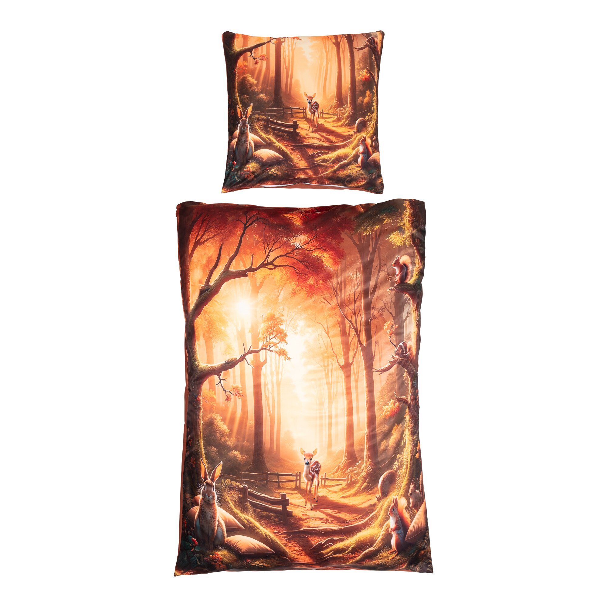 Erleben Sie traumhafte Nächte mit unserer Bettwäsche, die von niedlichen Waldbewohnern geschmückt ist. Diese pflegeleichte und angenehm weiche Bettwäsche sorgt für eine geruhsame Nacht und bringt ein Stück Natur in Ihr Schlafzimmer. Der praktische Reißverschluss erleichtert das Beziehen und Abziehen der Bettwäsche. Genießen Sie Komfort und Stil in einem mit dieser zauberhaften Bettwäsche, die Ihnen und Ihrer Familie süße Träume beschert.
