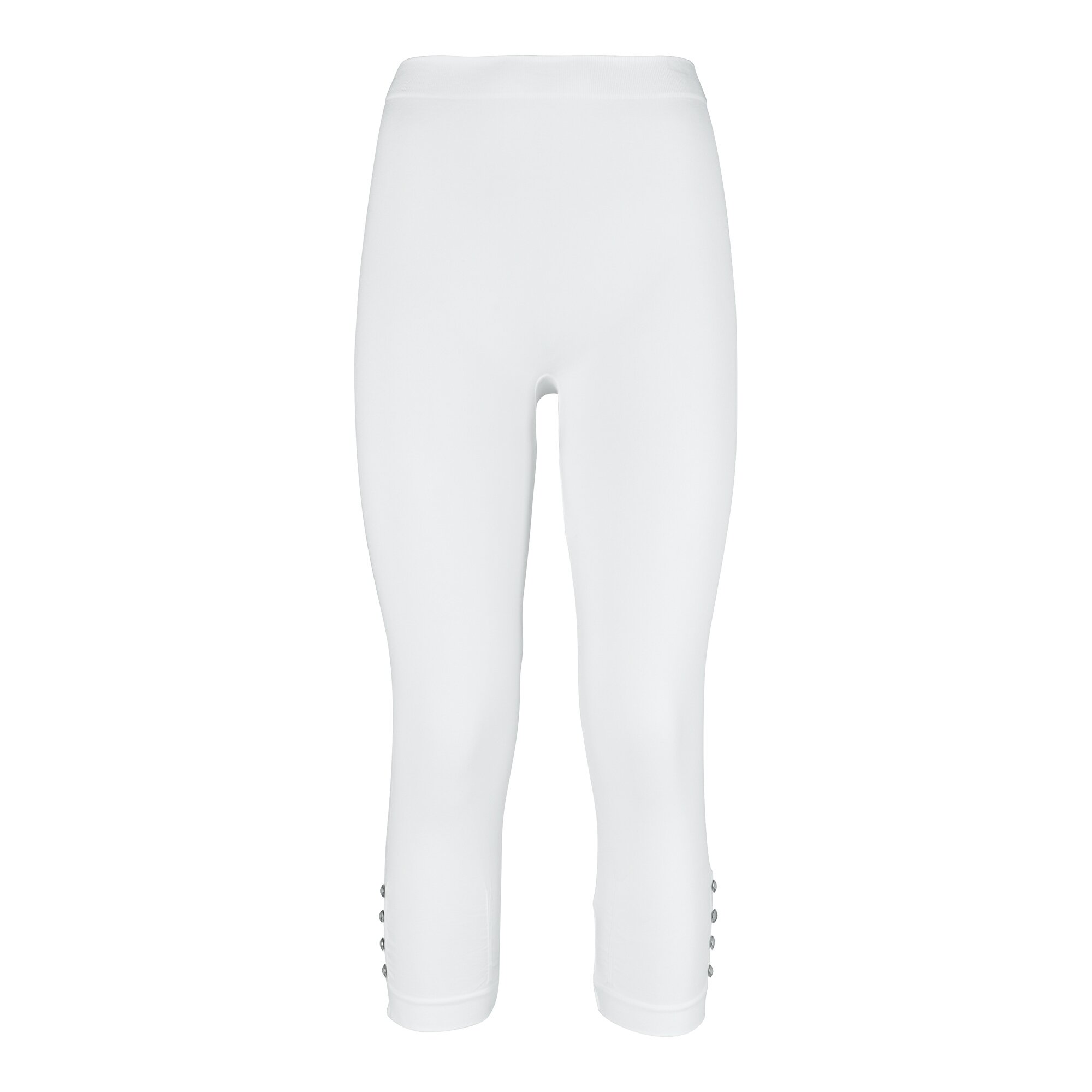 Diese Leggings sind nicht nur auf Capri der Hit! Diese Leggings bringen Ihre Beine zur Geltung und werten jede Sommerkombi auf – herrlich bequem und elastisch. Der modische Clou: Seitlich unten glänzen die Capri-Leggings mit einer Verzierung aus 4 Strasssteinchen – echt edel!