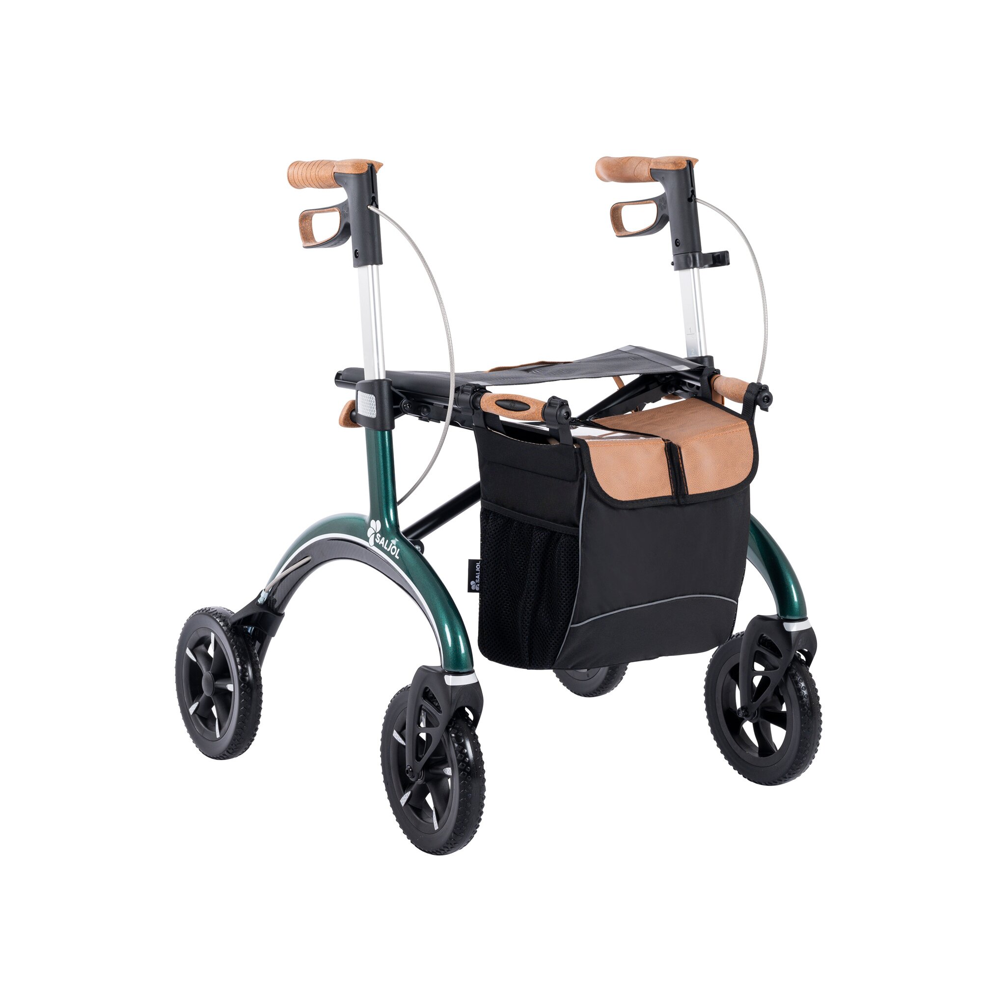 Erleben Sie die Revolution in Mobilität mit dem Saljol Carbon Rollator CR54. Dieses Meisterwerk vereint edles Design, herausragenden Komfort und federleichte Handhabung. Mit nur 5,6 kg ist er ultraleicht und faltbar für mühelosen Transport.Der CR54 besticht durch stoßabsorbierende Reifen und ergonomische Korkgriffe. Diese bieten nicht nur festen Halt, sondern ermöglichen auch sicheres Schieben und Stützen. Ideal für den täglichen Einsatz, innen wie außen, dank leichtgängiger Gummierung auf Asphalt und effizienter Federung auf unbefestigten Wegen. In der Wohnung überzeugt der CR54 mit Wendigkeit und Stabilität.Die zahlreichen Reflektoren gewährleisten höchste Sichtbarkeit bei Dunkelheit. Zusätzlich ist im Lieferumfang eine praktische Tasche enthalten, die perfekt für die wöchentlichen Einkäufe geeignet ist. Die weichen Räder überwinden spielend Holperstrecken, und der weiche Rollatorsitz lädt zu entspannten Pausen ein. Leichtgängige Bremsgriffe erleichtern das Parken und Verladen, und das geringe Packmaß macht ihn zu einem unkomplizierten Reisebegleiter – sei es bei Autofahrten oder Flugreisen. Entdecken Sie eine neue Dimension der Mobilität – mit dem Saljol Carbon Rollator CR54.