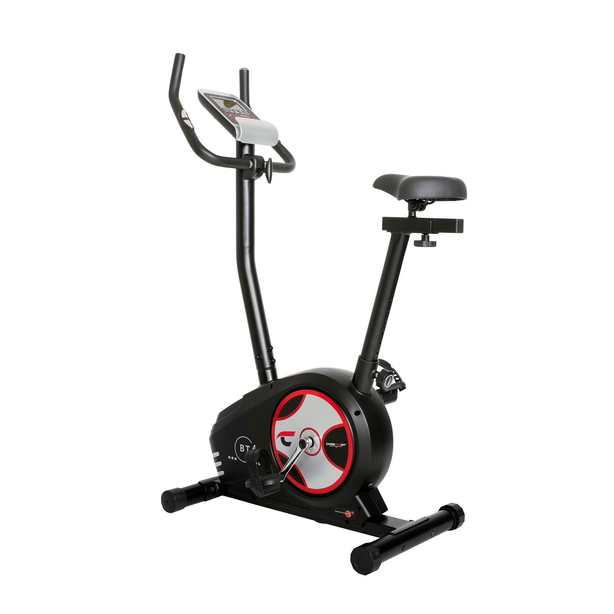 Ergometer der Klasse HA / EN 957-1/5 mit hoher Anzeigengenauigkeit 24-stufige Motor- und computergesteuerte Widerstandseinstellung (Magnet-Brems-System) ca. 7 kg Schwungmasse 10 vorgegebene Trainingsprogramme 4 Herzfrequenzprogramme mit Vorgabe der maximalen Pulsfrequenz (Pulsgesteuert) 5 Benutzer Programme 1 manuelles Programm 1drehzahlunabhängiges Watt-Programm (Vorgabe der Wattleistung von 30 bis 350 Watt einstellbar in 10- Watt Schritten) Handpulsmessung Horizontal und vertikal verstellbarer Sattel Sattel und Lenker neigungsverstellbar Niveau Boden- Höhenausgleich Transportrollen Netzteil Computer mit Halterung für Tablet & Smartphone Großes LCD Display mit 6 Anzeigefenster mit gleichzeitiger Anzeige von: Zeit, Geschwindigkeit, Entfernung, ca. Kalorienverbrauch, Pedalumdrehung, Watt und Pulsfrequenz In den Benutzerprogrammen ist eine Eingabe von persönlichen Grenzwerten wie Zeit, Entfernung, Pulsfrequenz und Watt möglich Überschreitung der Grenzwerte wird angezeigt Fitness- Test Anzeige Geeignet bis zu einem Körpergewicht von max. 120 kg Stellmaße: ca. L 85 x B 48 x H 145 cm