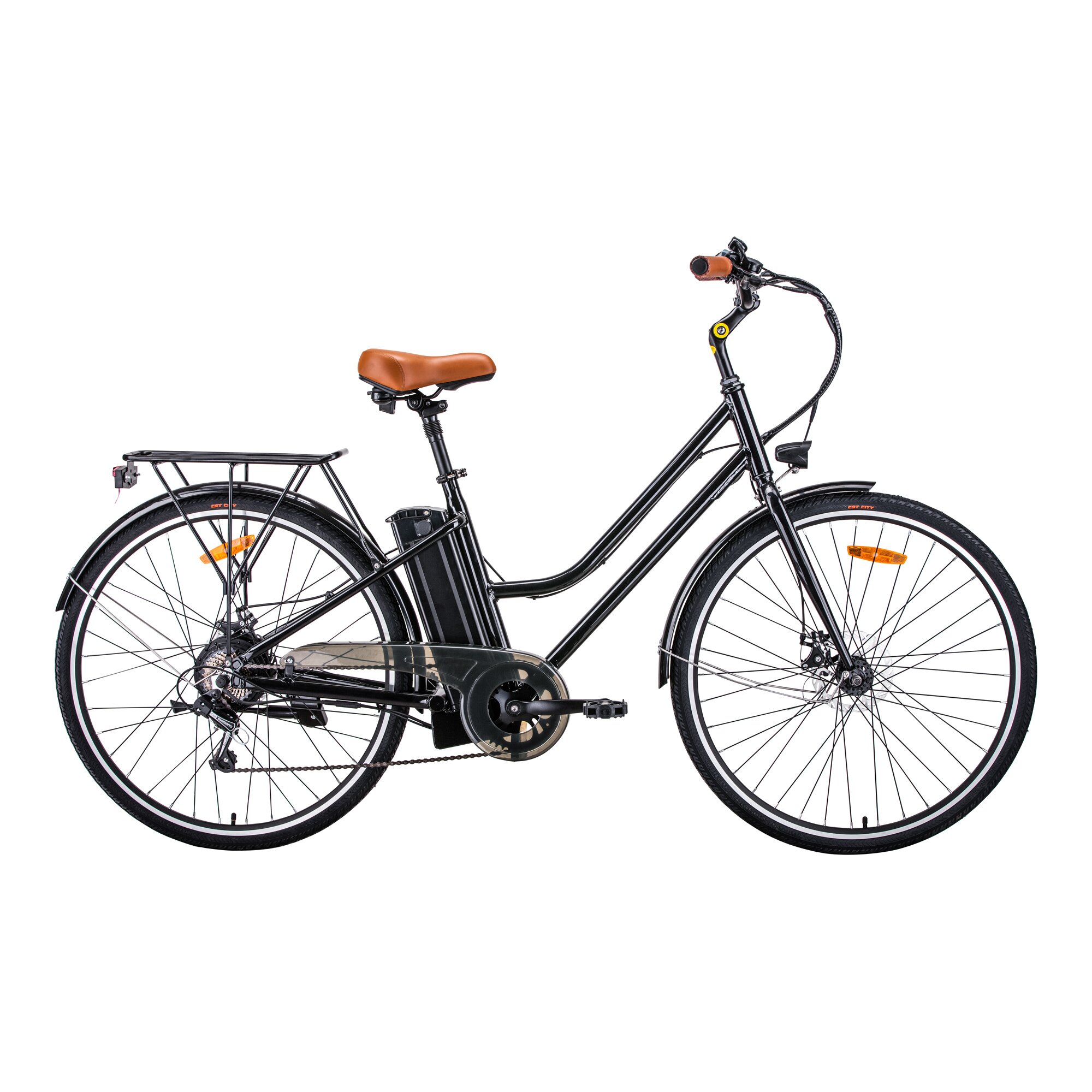Vorderradgabel: Stahl Batterie: 36V/10Ah. Gewicht der Batterie: 2,5 kg. Batterie-Typ: LITHIUM Rahmen: 27,5″-Aluminium Reichweite: 45-60 km (abhängig von der Fahrweise, Beladung und Einsatzbereich) Nettogewicht: 24 kg Motor: 250W Geschwindigkeit: 25 km/h Schlicht und einfach mit idealen Eigenschaften: Rutschsichere Pedale, gepolsterte u. gefederter Sattel, Front- u. Rückleuchten, Scheibenbremsen, Shimano 7-Gangschaltung, leicht zugänglicher Akku.