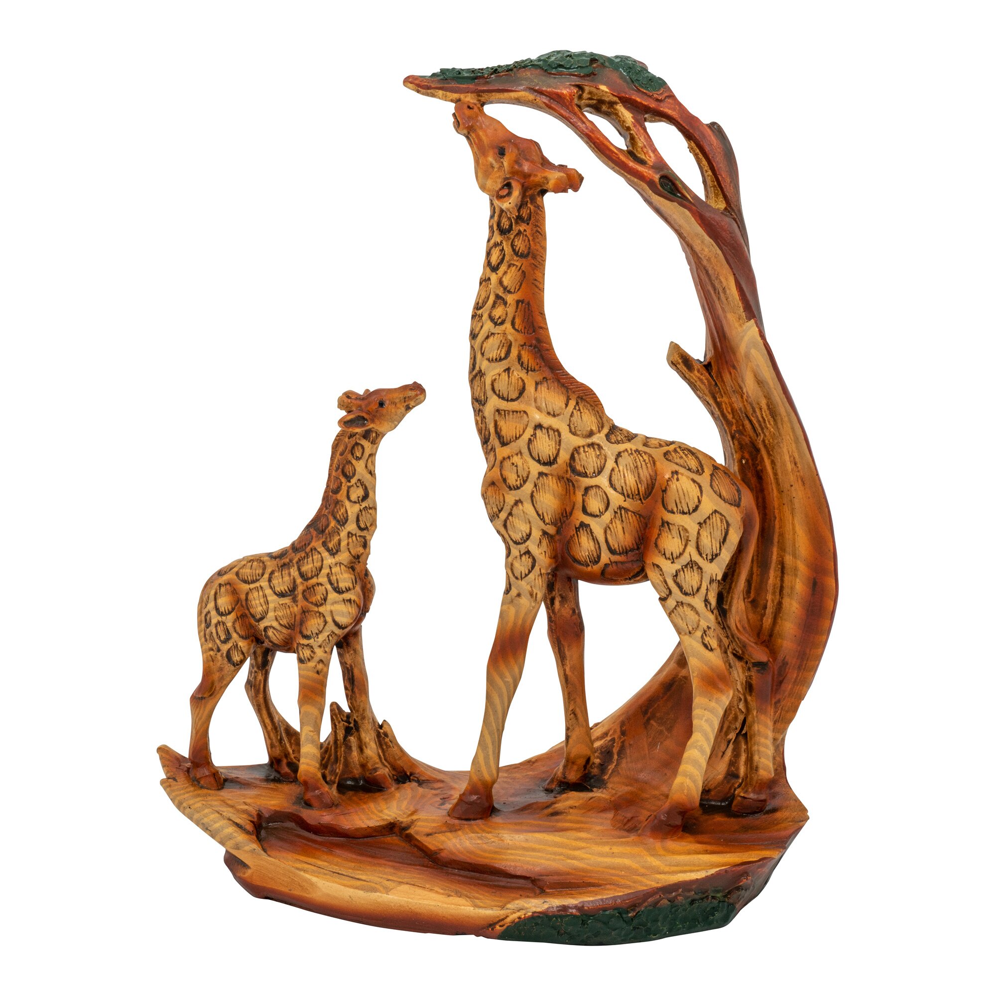 Giraffen gehören zu den faszinierendsten Tieren unserer Erde. Nicht nur ihre erstaunliche Größe, sondern auch ihr ausgeprägtes Sozialverhalten und ihr tiefer Familiensinn macht sie so sympathisch. Mit diesen Deko-Giraffen aus Kunststein holen Sie sich die anmutigen Tiere in Ihr Wohnzimmer und verleihen dem Raum stilvoll eine exotische Note. Die Giraffen-Skulptur in Holzoptik ist in verschiedenen Varianten erhältlich, doch eines haben sie alle gemeinsam: Ob als Giraffenpaar oder als Familie mit Giraffenmutter und ihrem Kleinen – jede Skulptur besticht durch ihre detailliert herausgearbeitete Struktur, welche der Szenerie eine besondere Dynamik verleiht und sie somit förmlich zum Leben erweckt. Ein echter Blickfang!