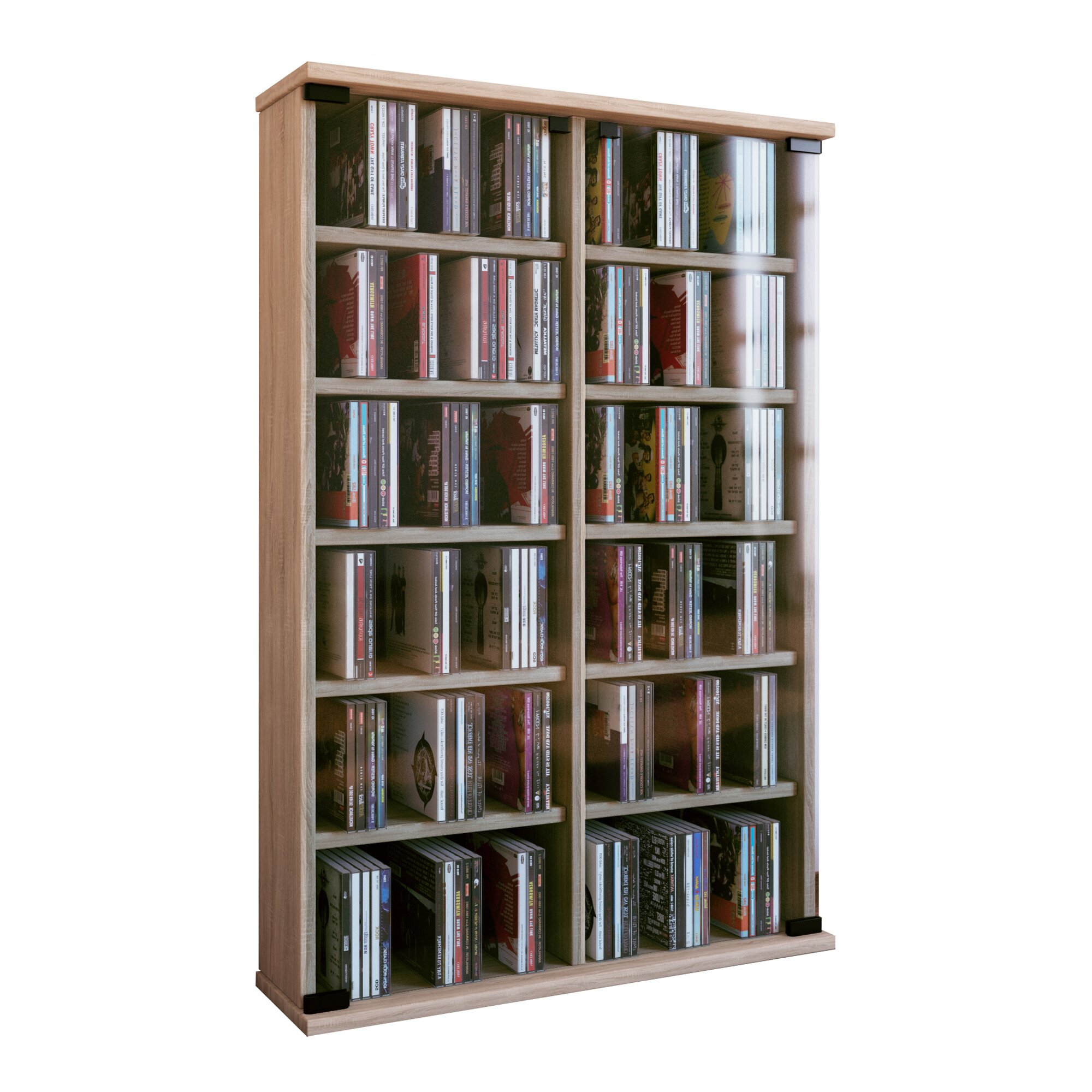 VCM CD/DVD Möbel „Roma“ mit 2 ESG-Sicherheitsglastüren. 10 variable Einlegeböden bieten Archivierungsmöglichkeiten für 300 CDs oder 130 DVDs oder 72 Videos. Holzstruktur-Nachbildung. Die Lieferung erfolgt zerlegt inkl. Montagematerial und Aufbauanleitung.