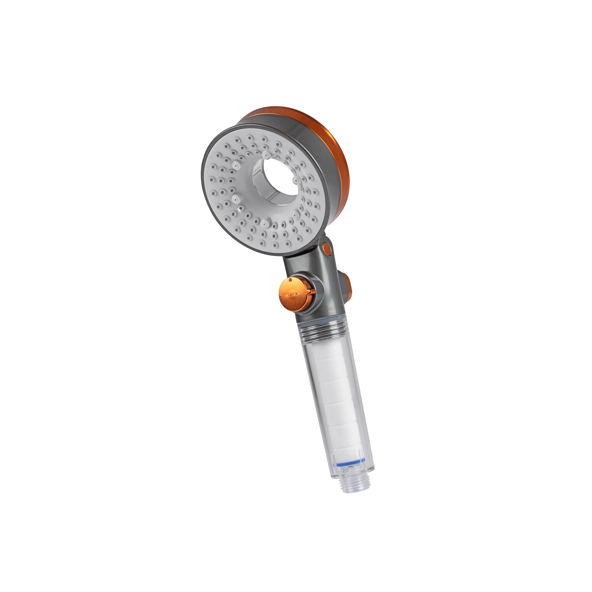 Duschkopf mit Filtersystem für ein ganz neues Duscherlebnis! Duschkopf mit Hochdruck- und Wassersparfunktion: verbraucht bis zu 60 % Wasser (gegenüber herkömmlichen Duschköpfen) durch speziell geformte Wasserdüsen und Veränderung des Wasserdrucks Innovatives Zwei-Seiten-Design: 3 Mode: Mountain Dew, Spa Jet und Regenmodus – einfache Auswahl durch Neigung des Duschkopfes Regulierung Wasserdruck und An/Aus über zwei Tasten Komfortable Handhabung: leichte Montage (1/2 Zoll-Anschlüsse), zum Reinigen abnehmbar und austauschbare Filter