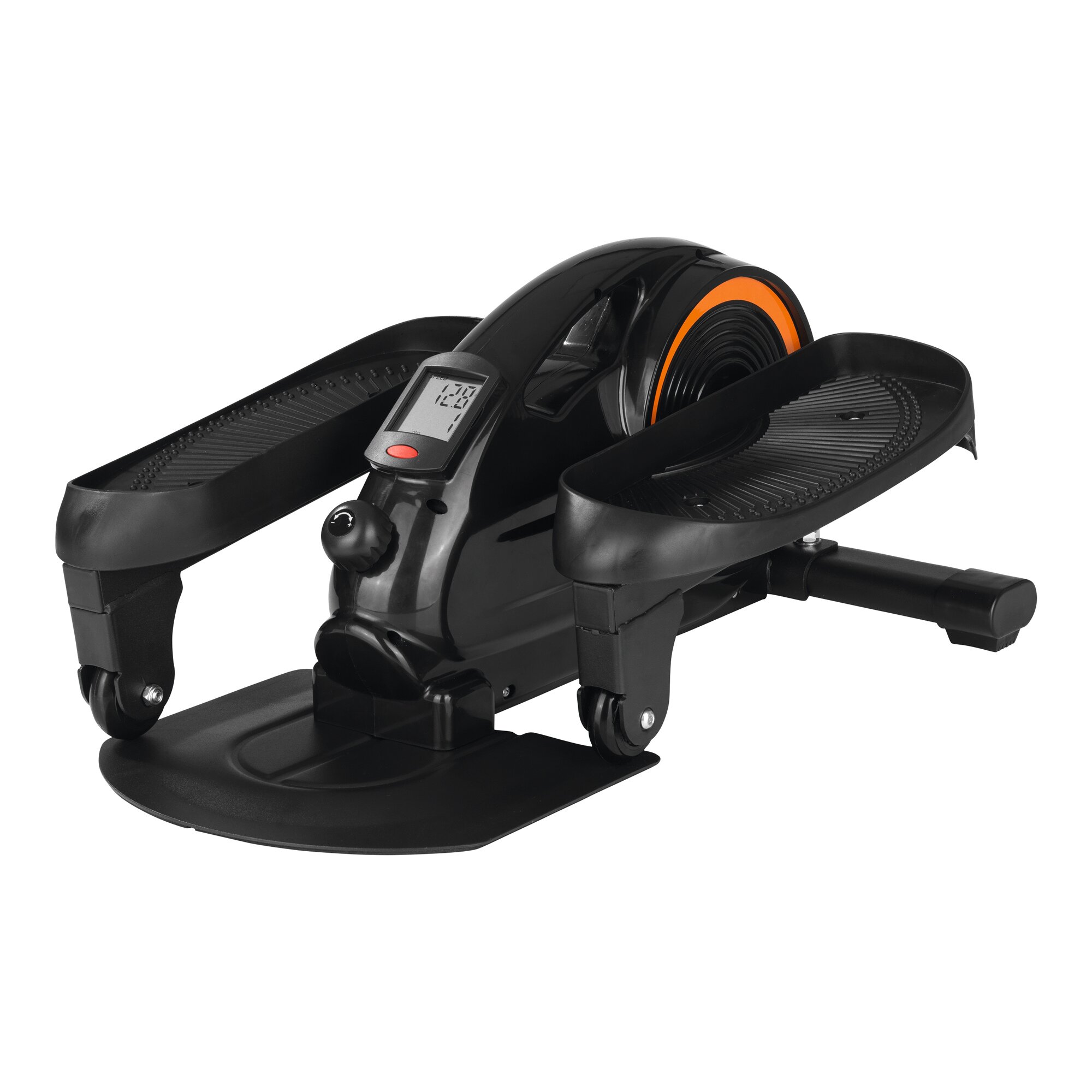 Nach einem anstrengenden Arbeitstag noch ins überfüllte Fitness-Studio? Geschenkt! individuelles Training jederzeit & überall platzsparendes Design für jede Zimmergröße flüsterleiser Betrieb stört weder dich noch andere Mit dem MAXXMEE Ellipsen-Trainer ziehst du dein persönliches Workout bequem im Sitzen und zu Hause durch! Das schlanke Trainingsgerät ist kabellos, schnell aufgestellt und flüsterleise – ideal für eine Bauch-Beine-Po-Einheit beim Fernsehen, Lesen oder am Laptop. Der durch die Mechanik vorgegebene elliptische Bewegungsablauf sorgt für eine exakte Ausführung, weshalb sich der MAXXMEE Ellipsen-Trainer wirklich für jedes Alter und jeden Fitness-Level eignet. Damit verbrennst du ganz nebenbei Kalorien, trainierst Waden, Oberschenkel, Po, Hüfte, Rücken und Bauchmuskeln. 8 Widerstandsstufen ermöglichen ein individuell anpassbares Trainingsniveau. Rutschfeste Pedale, ein stabiler Stand sowie der Rad-Stopper sorgen zudem für maximale Sicherheit beim Trainieren. Anschließend ist der schlanke Trainingspartner genauso schnell platzsparend verstaut wie er für die nächste Einheit wieder am Start ist. Technische Details: Material: ABS, PP, Stahl, PC, LCD Max. Belastbarkeit: 100 kg je Pedal Standfläche: 62,5 x 42,5 x 28 cm Gewicht: 13,4 kg Trainingscomputer Spannungsversorgung: 3 V DC Lieferumfang: 1x Haupteinheit mit Trainingscomputer, 1x Standfuß, 1x Standplatte, 1x Linkes Pedal, 1x Rechtes Pedal, 14x Befestigungsmaterial, 1x Maulschlüsse, 1x Sechskantschlüssel Hinweise: Dieses Trainingsgerät ist zum Konditionstraining und zum Trainieren der Bein- und Bauchmuskulatur bestimmt. Es ist für eine Benutzung im Sitzen vorgesehen. Personen, die in guter physischer Verfassung sind, können auf dem Gerät auch im Stehen trainieren, wenn sie nicht mehr als 100 kg wiegen. Das Gerät ist nicht für medizinische oder therapeutische Zwecke konzipiert. Das Gerät darf nicht von mehreren Personen gleichzeitig verwendet werden.