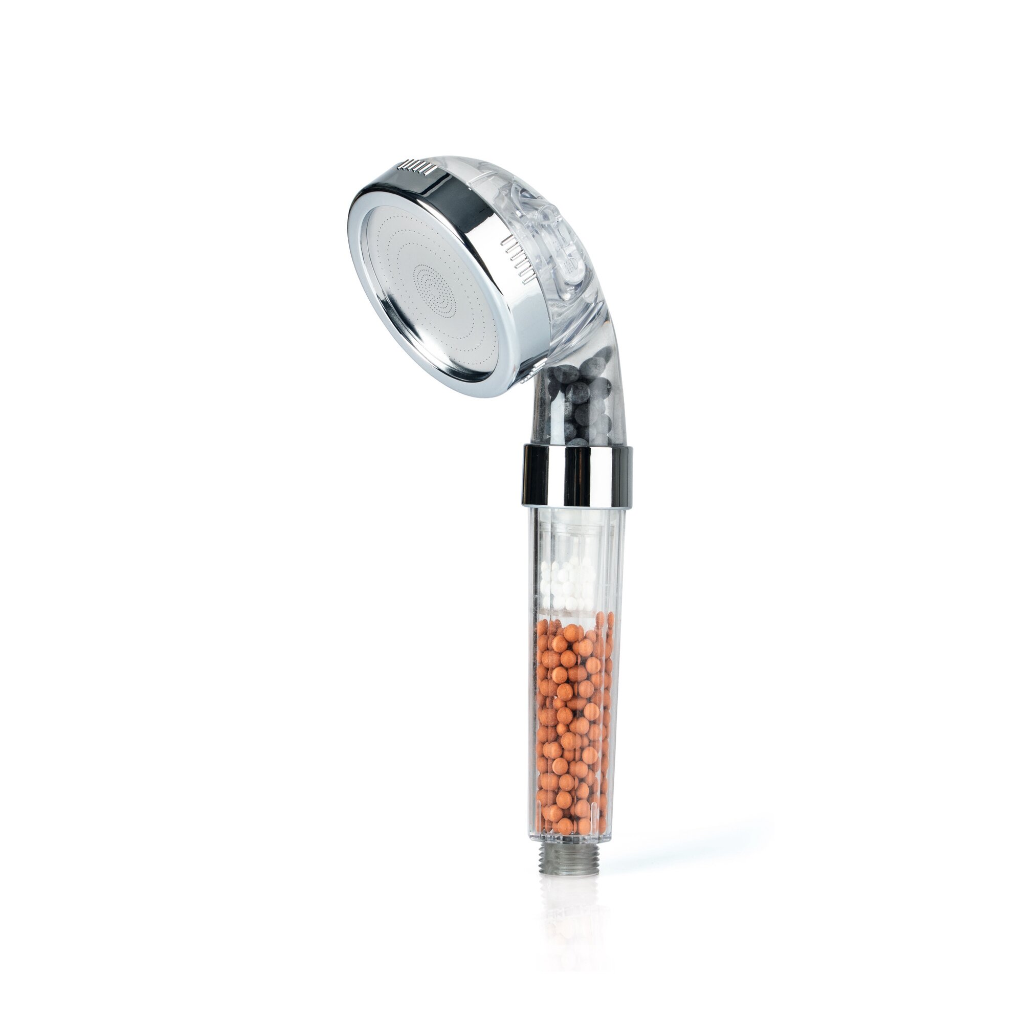 Machen Sie Ihre Dusche zur Wellness-Oase! Dank des EASYmaxx Wellness-Duschkopf mit Mineralperlen können Sie jede Dusche nun noch intensiver genießen – entweder als entspannende Regendusche mit sanftem, feinem Wasserstrahl, als wohltuende Massagedusche mit kräftigem, präzisem Wasserstrahl zur Muskelentspannung oder als Wellnessdusche, die beide Varianten miteinander kombiniert. Der 1/2 Zoll Duschkopf mit 344 feinen Düsen passt auf nahezu alle Anschlüsse und ist ohne zusätzliches Werkzeug schnell und bequem montiert. Durch die Mikrodüsen-Technologie wird die Geschwindigkeit des Wasserflusses erhöht, der Wasserdruck steigt und das Wasser kann konstant und stabil fließen, während Sie duschen. So lässt sich mit dem EASYmaxx Wellness-Duschkopf mit Mineralperlen bis zu 30 % mehr Wasser sparen, als mit herkömmlichen Duschköpfen. Zusätzlich sind die Mineralperlen im Duschkopf antibakteriell, ionenfilternd, mineralisierend und ph-hautneutral, ermöglichen also eine umweltfreundliche Wasserfiltration. Das weiße Calziumsulfit sorgt für weicheres Wasser, das graue Turmalin wirkt gegen unangenehme Gerüche und Kalkablagerungen und die rot-braunen Mineralsteine aus Ton reduzieren Wasserverunreinigungen, Chlor und Bakterien. So lässt es sich einfach noch entspannter duchen.