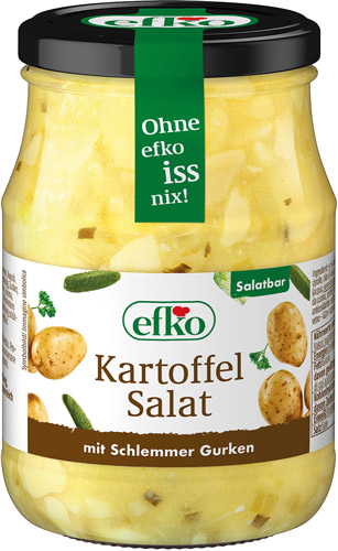 Kartoffel Salat. Pasteurisiert. Netto Füllmenge Nettogehalt 360.00 Gramm,Bruttogewicht 0.54 Kilogramm Allergene Enthält – Ist im Produkt enthalten Senf und -erzeugnisse Aufbewahrung Mindestens haltbar bis Ende: siehe Etikette. Vor direkter Sonneneinstrahlung schützen. Nach dem Öffnen nur wenige Tage im Kühlschrank haltbar. Zutaten Zutaten: 53% Kartoffeln, Wasser, 11% Gurken, Zucker, Zwiebel, Rapsöl, Weingeistessig, Speisesalz, Senf (Wasser, SENFSAAT, Weingeistessig, Zucker, Speisesalz, Gewürze), Verdickungsmittel: Xanthan, Gewürze, Aroma, Antioxidationsmittel: Ascorbinsäure, Farbstoff: Riboflavin. Nährwerte pro 100g Unzubereitet 100 Gramm, Energie 317,00 kJ, Energie 75,00 kcal, Fett 2,20 g, davon gesättigte Fettsäuren 0,10 g, Kohlenhydrate 12,00 g, davon Zucker 4,20 g, Eiweiß 1,20 g, Salz 1,30 g Marke EFKO Hersteller Name: efko,Adresse: A-4070 Eferding, Hinzenbach 38, Österreich