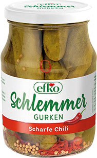 Gurken mit Chili scharf. Pasteurisiert. Netto Füllmenge Abtropfgewicht 190.00 Gramm,Nettogehalt 330.00 Gramm,Bruttogewicht 0.51 Kilogramm Allergene Enthält – Ist im Produkt enthalten Senf und -erzeugnisse Aufbewahrung Mindestens haltbar bis Ende: siehe Etikette. Vor direkter Sonneneinstrahlung schützen. Nach dem Öffnen nur wenige Tage im Kühlschrank haltbar. Zutaten Zutaten: Gurken, Zucker, Weingeistessig, Speisesalz, 0,2% Chili, SENFKÖRNER, Gewürzextrakt. Nährwerte pro 100g Unzubereitet 100 Gramm, Energie 102,00 kJ, Energie 24,00 kcal, Fett 0,50 g, davon gesättigte Fettsäuren 0,10 g, Kohlenhydrate 3,40 g, davon Zucker 3,00 g, Eiweiß 1,20 g, Salz 1,30 g Marke EFKO Hersteller Name: efko,Adresse: A-4070 Eferding, Hinzenbach 38
