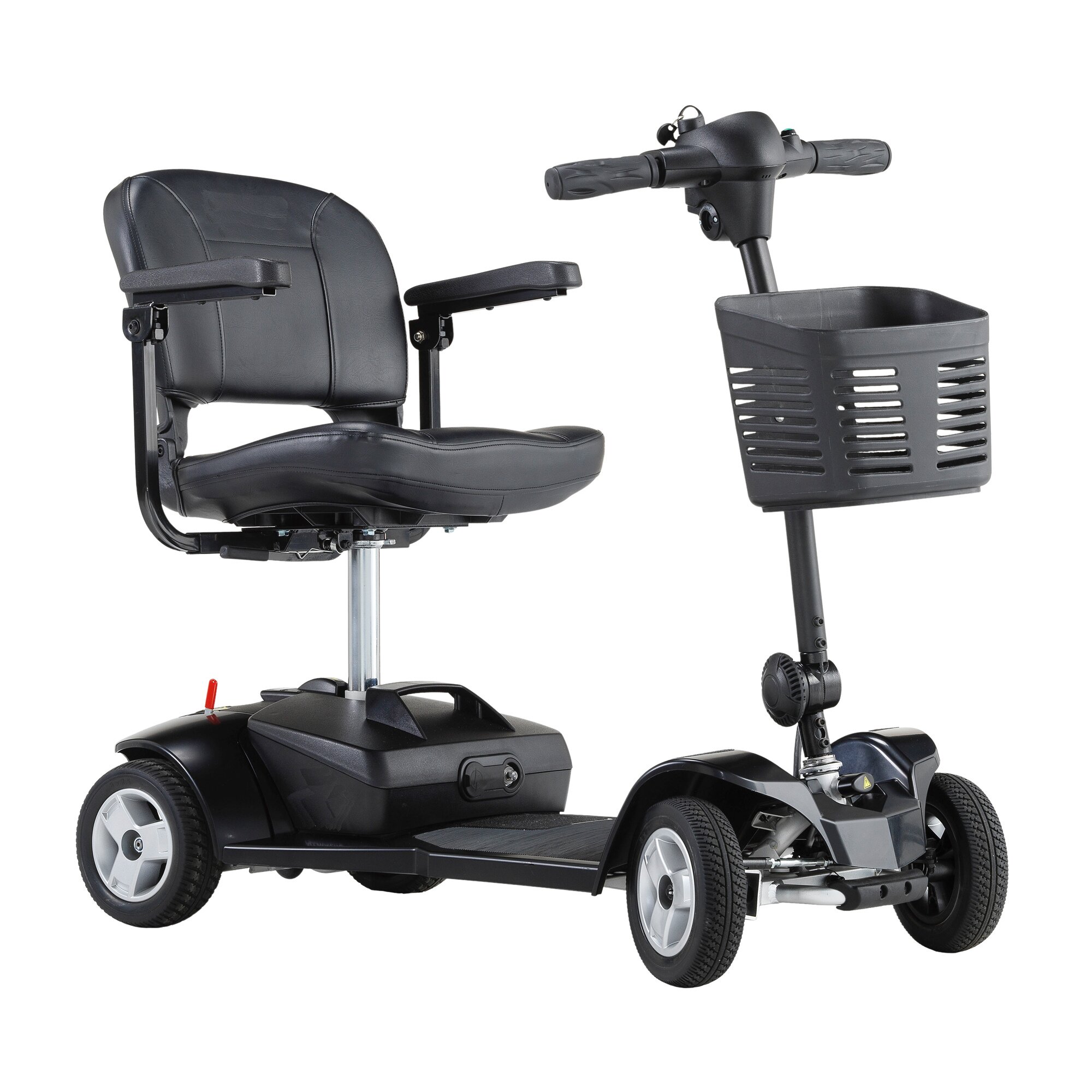 Wendekreis: 244 cm Motorleistung: 180 W Geschwindigkeit: max. 6 km/h maximale Reichweite: bis zu 19 km Akkus: 24V, 12 Ah (Lithium-Ionen, Akkupack) Ladegerät 24 Volt: 2 Ah aktive Motorbremse: Ja magnetische Haltebremse: Ja Anzahl Räder: 4 Gesamtgewicht incl. Akkus: 31,3 kg Gewicht Akku: 2,5 kg maximale Zuladung: bis zu 120 kg Der M24 SL ist das Leichtgewicht unter den Elektromobilen. Dank seiner Leichtbauweise und dem Aluminiumrahmen – inklusive leichter Lithium-Batterie – wiegt es lediglich 31,3 Kilogramm. Zudem lässt sich das Gerät ohne Werkzeug im Handumdrehen in handliche Einzelteile zerlegen, die sich platzsparend verstauen lassen. Diese Eigenschaften machen den M24 SL zu einem idealen Reise- und Alltagsbegleiter.