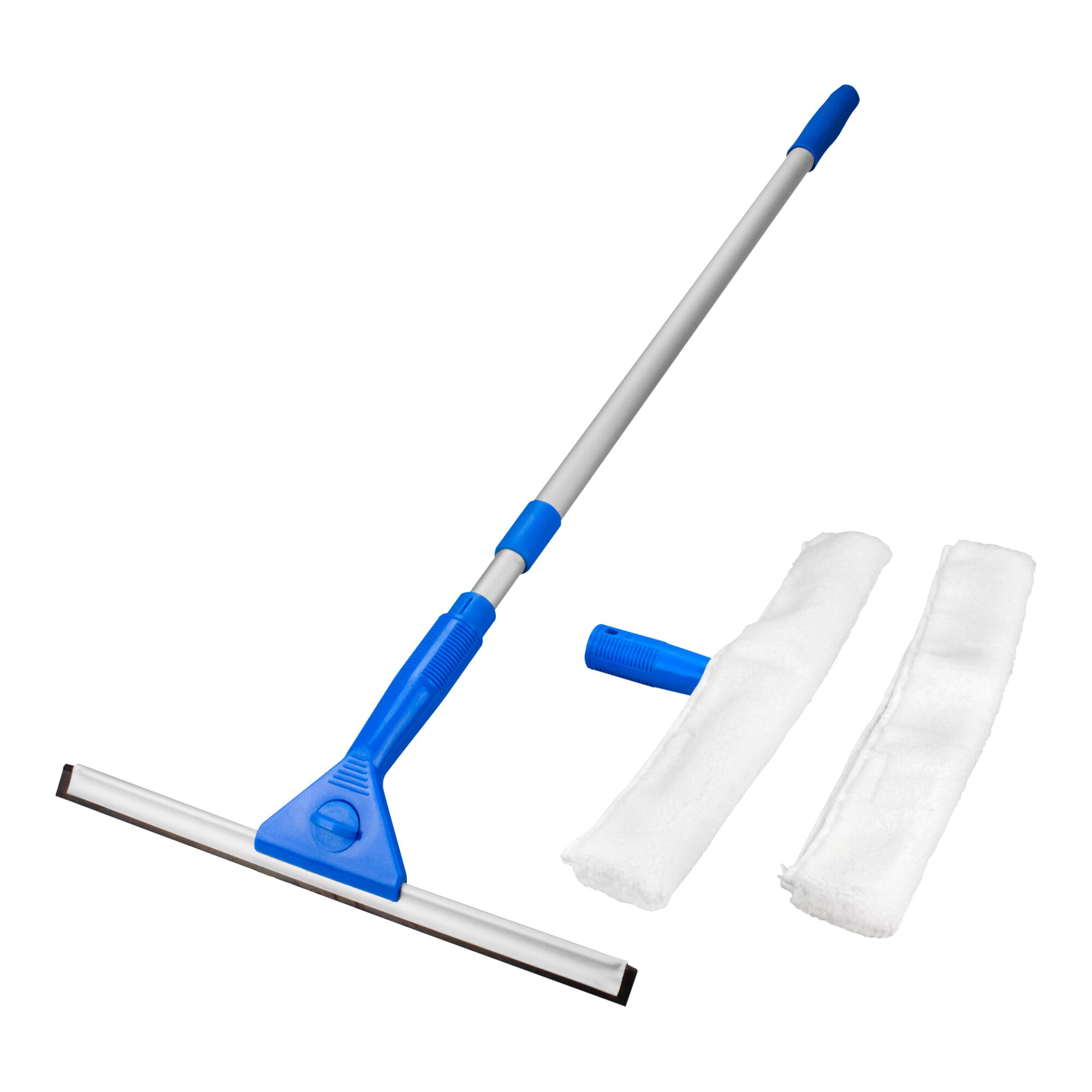 Streifenfreier Glanz! Größere Glasflächen und Fenster reinigen Sie mühelos mit diesem Set. Bestücken Sie den Stiel je nach Bedarf: Fensterwischer plus weicher Waschbezug oder Abzieher mit anschmiegsamer Gummilippe! Durch den Teleskopstiel (ausziehbar von 54 – 91 cm) erreichen Sie auch höher gelegene Stellen ganz bequem. Waschbar bis 40 °C. • endlich Fenster putzen ohne Tritt und ohne Leiter • ausziehbar von 54 – 91 cm • inkl. 2 Ersatzbezügen für Fensterwischer Maße: ausziehbar von 54 – 91 cm