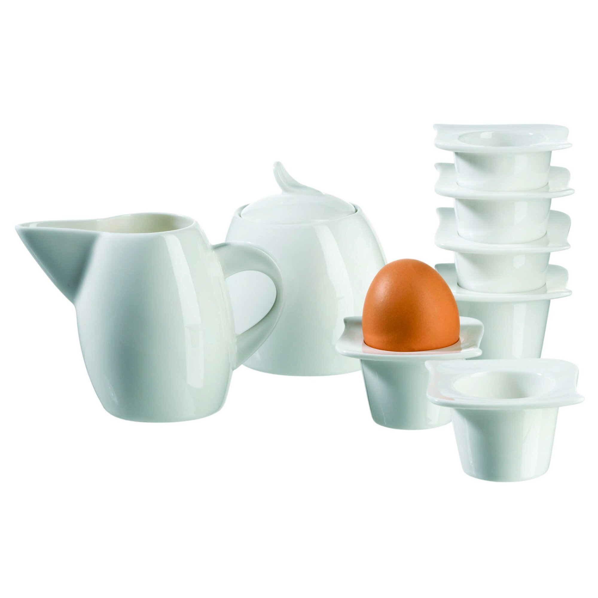Das zeitlose Zusatzartikel-Set »LA MUSICA« verleiht dem Tisch Stil. Für mehr Anmut und Eleganz steht das stilvolle Geschirr. Es wird aus hochwertigem Durable Porzellan gefertigt und bietet ein optimales Zusammenspiel aus Qualität und Ästhetik. Geschwungene Formen verleihen dieser Serie einen filigranen und zarten Charakter. Sowohl im Alltag als auch zu besonderen Anlässen ist es eine Bereicherung. Dieses Set der Serie »LA MUSICA« punktet mit hohen Qualitätseigenschaften und ist weiterhin spülmaschinen- und mikrowellengeeignet. Dieses Set besteht aus:1 x Zuckerdose1 x Gießer6 x EierbecherDie perfekte Ergänzung zu Ihrem Service der Serie La Musica.Anzahl: 8-teiligAnzahl Eierbecher (bp): 6Anzahl Milchausgiesser (bp): 1Anzahl Zuckerdose (bp): 1Durchmesser Zuckerdose (bp): 10,5Farbe: ElfenbeinMaterial: PorzellanPersonenanzahl: 6Serie: La MusicaTitel (bp): Ergänzungsset „LA MUSICA “ , 8tlg.Typ: FrühstückssetVerzierungsfarbe: keineVolumen Milchausgiesser (bp): 230