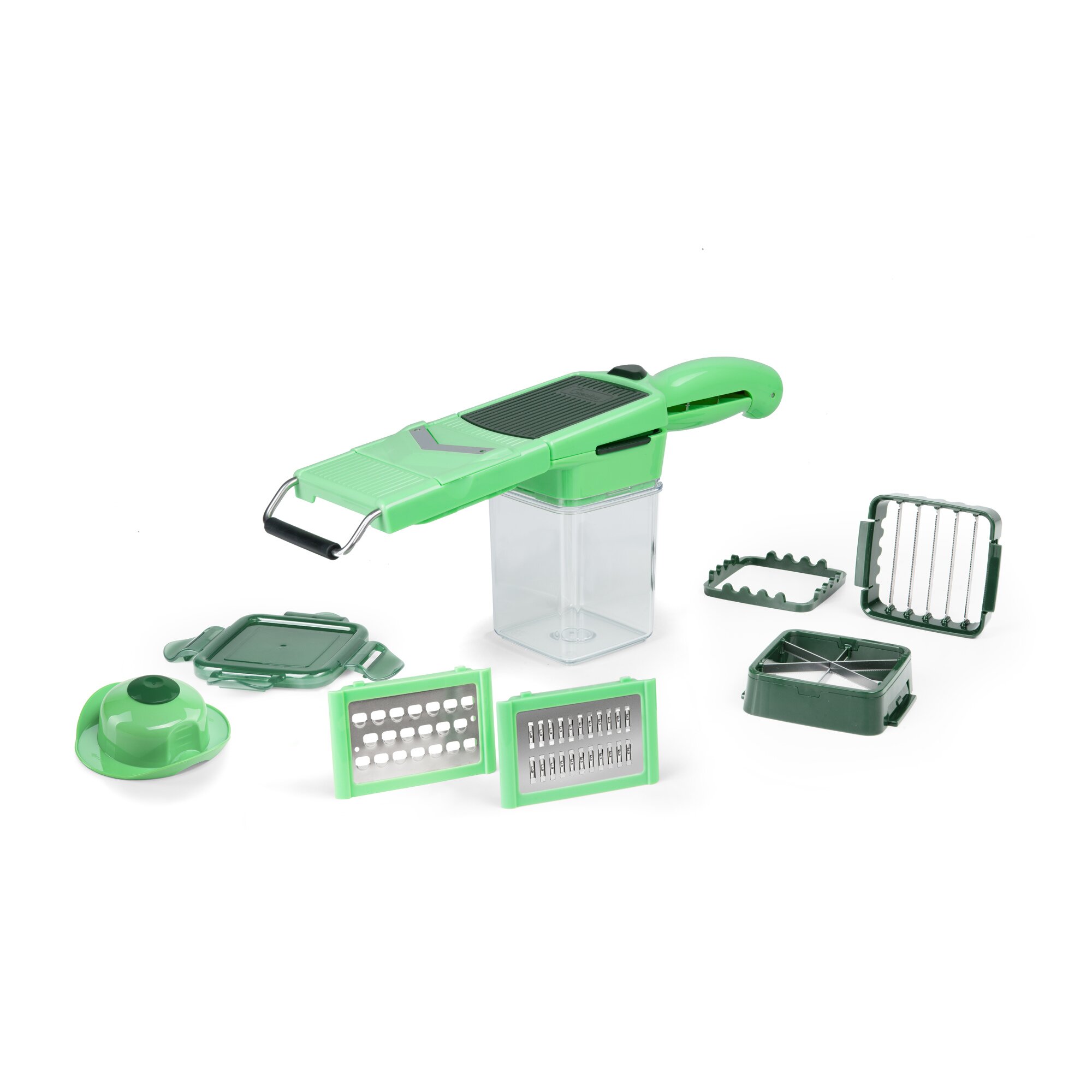 Dieser vielseitige Küchenhelfer bietet Ihnen maximale Flexibilität. Dank des praktischen Ansteckrahmens und der kombinierten Messereinsätze können Sie mühelos Würfel, Stifte, Scheiben und mehr schneiden. Die extra scharfen Edelstahlklingen garantieren präzise Schnitte, und das kompakte Design ermöglicht direktes Arbeiten über Pfannen oder Schüsseln. Ideal für kreative Gerichte – schnell, sauber und ohne Aufwand!