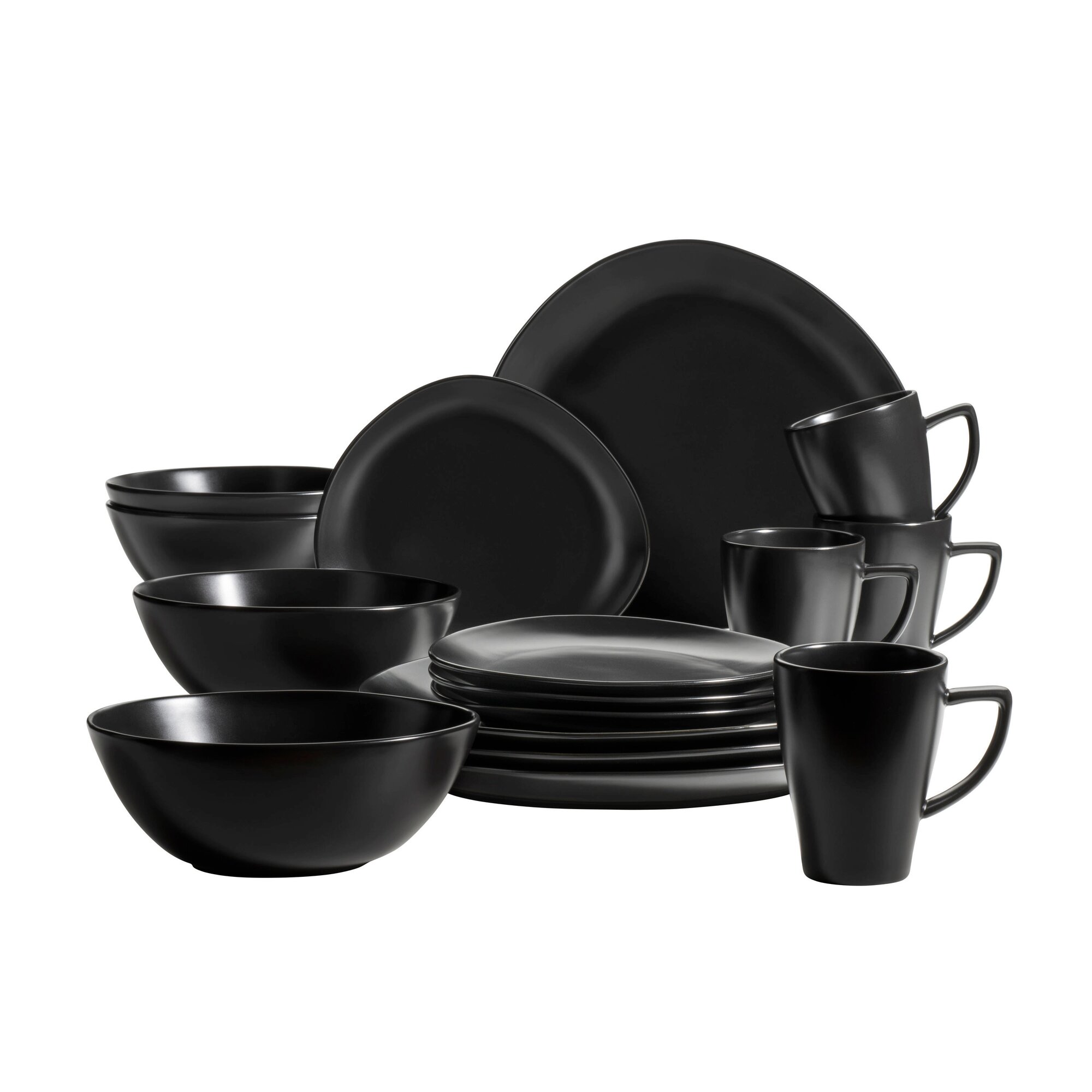 Modernes Understatement in mattem Schwarz, und dennoch ein absoluter Hingucker auf Ihrem Esstisch dank ihrer individuellen Formsprache: So präsentiert sich die Keramikgeschirrserie GLENDALE der österreichischen Traditionsmarke MÄSER. Die gesamte Kollektion ist aus hochwertigem Steinzeug gefertigt. Hierbei handelt es sich um eine Keramikart, die härter und robuster ist als traditionelles Steingut und mit der Sie deshalb lange Ihre Freude haben werden. Alle Teile der Serie Glendale sind dauerhaft spülmaschinen- und mikrowellengeeignet. Dieses Set wird in einer sicheren Transportverpackung aus nachhaltigen Materialien versendet. Unsere Füllmengenangaben gehen im Sinn einer besseren objektiven Vergleichbarkeit von einer randvollen Befüllung aus.Dieses Geschirrset für 4 Personen enthält 4 flache Speiseteller (Ø 25-29 cm), 4 Dessertteller (Ø 18-21 cm), 4 großzügige Müslischalen bzw. Suppenschalen (Ø 16-20 cm, 900 ml Füllmenge) und 4 Kaffeebecher (325 ml)Anzahl: 16Farbe: SchwarzMaterial: SteinzeugPersonenanzahl: 4Serie: GlendaleVerzierungsfarbe: Farbig ohne Dekor