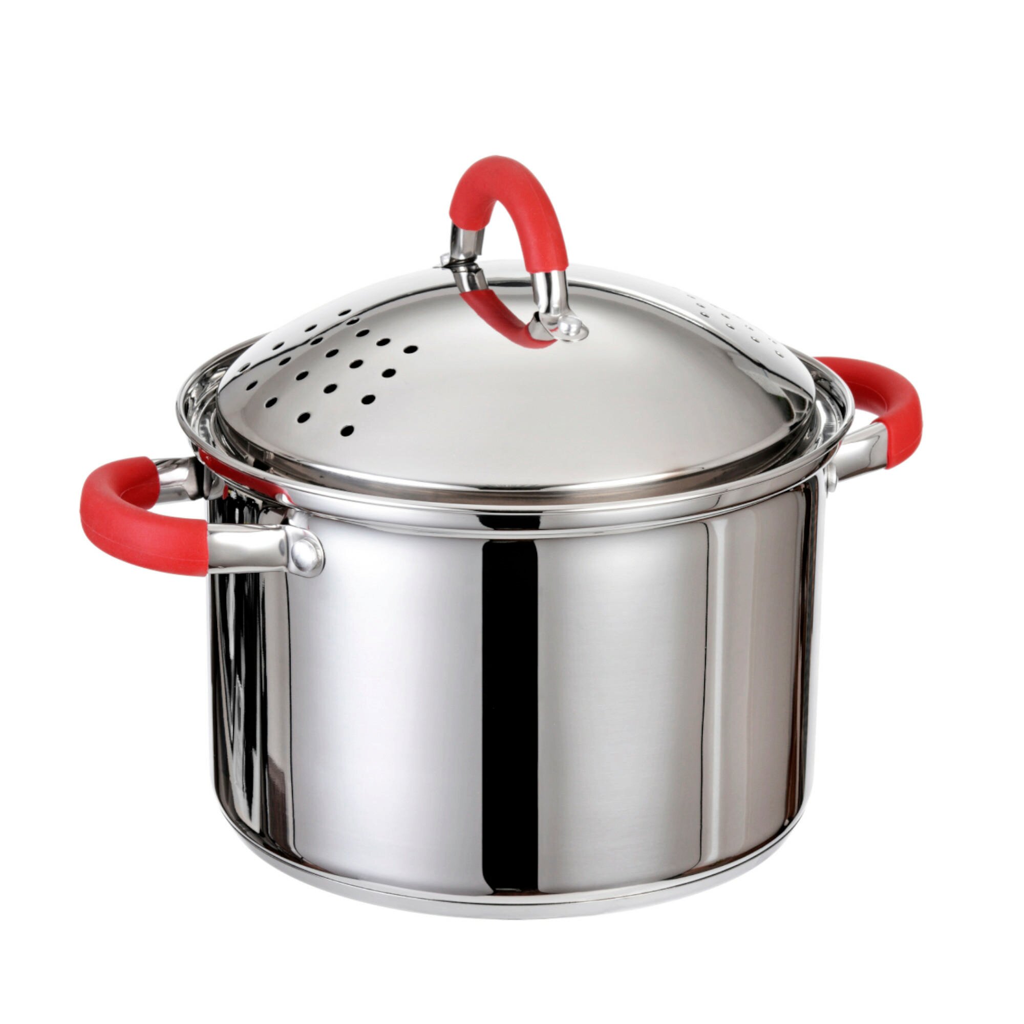 Genialer Kombi-Kochtopf, in dem Nudeln oder Kartoffeln gekocht werden und direkt ohne umschütten, abgegossen werden können.Der Deckel verfügt über zwei verschiedene Lochgrößen und lässt sich am Topf befestigen.Die Griffe sind mit Kunststoff ummanltelt.Lieferumfang1 Nudeltopf EdelstahlMaße: Höhe ges. (mit Deckel) ca. 24 cm, Höhe (ohne Deckel) ca. 15,5 cm, Breite ges. (mit Henkel) ca. 31,5 cm, Ø innen ca. 21,8 cm, Ø ca. 23,7 cm, Lochungen im Deckel: Ø ca. 5 mm und 3 mmGewicht ca. 1,25 kgAnzahl: 1Artikelart-Galeria: KochtöpfeFarbe: silberGröße: 22 cmHauptmaterial: EdelstahlPflegehinweis: Spülmaschinengeeignetgeschlecht: unisexgrundpreispflicht: neinsaison: nos