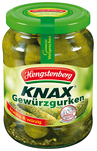 Gewürzgurken. Netto Füllmenge Abtropfgewicht 360.00 Gramm,Nettogehalt 670.00 Gramm,Bruttogewicht 1005.00 Gramm Allergene Enthält – Ist im Produkt enthalten Senf und -erzeugnisse Aufbewahrung Nach Anbruch im Kühlschrank aufbewahren. Zutaten Zutaten: Gurken, Branntweinessig, Zucker, Salz, Dill, SENFKÖRNER, Kräuterextrakte, Gewürzextrakte. Nährwerte pro 100g Unzubereitet 100 Gramm, Energie 108,00 kJ, Energie 25,00 kcal, Fett 0,50 g, davon gesättigte Fettsäuren 0,10 g, Kohlenhydrate 4,30 g, davon Zucker 4,20 g, Ballaststoffe 0,50 g, Eiweiß 0,80 g, Salz 1,30 g Ursprungsland DEUTSCHLAND, BUNDESREPUBLIK Hersteller Name: Hengstenberg GmbH & Co. KG,Adresse: D-73726 Esslingen