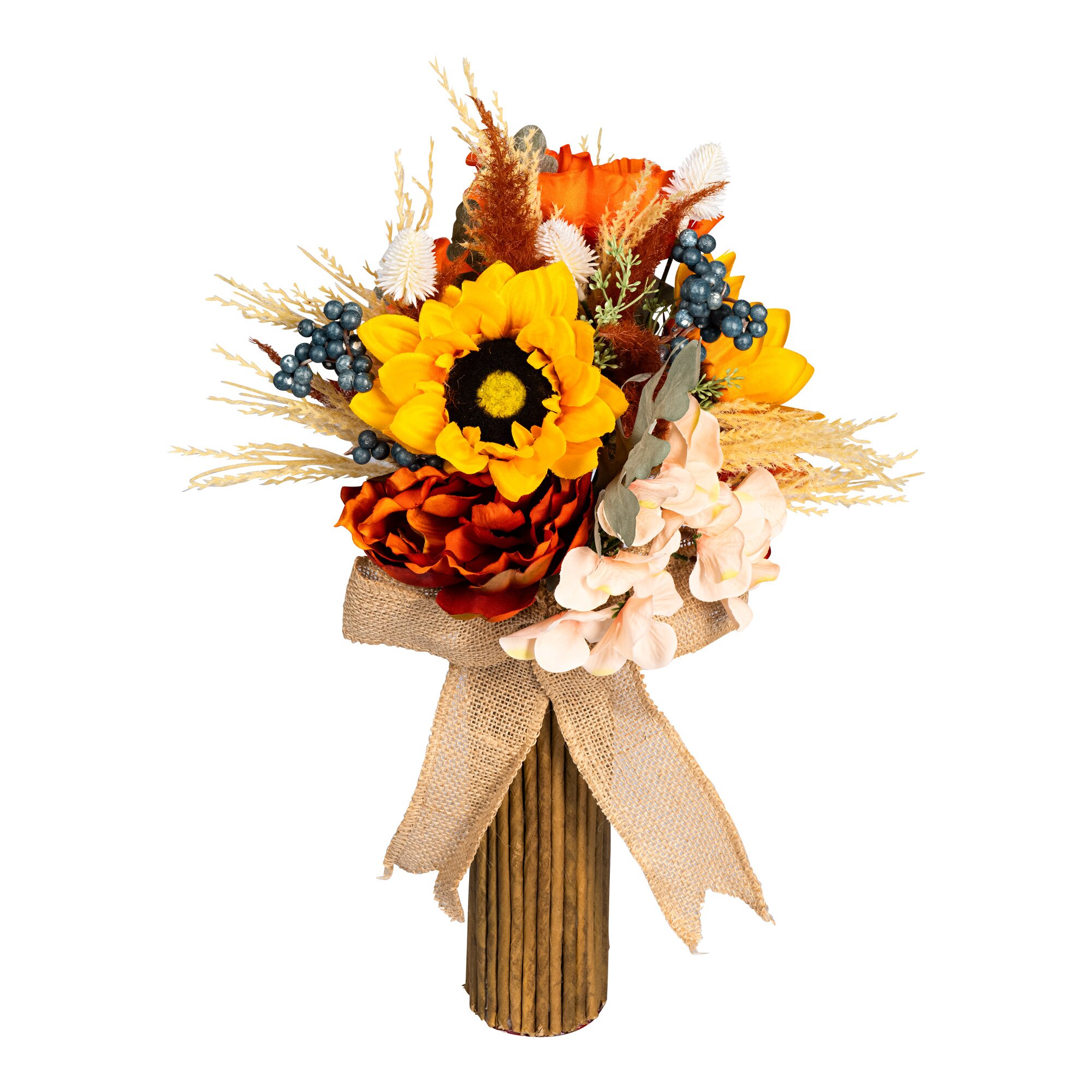 Mit saisonalen Blumen, Zweigen und Beeren geschmückt, verbreitet dieser üppig gebundene Strauß Herbststimmung in Ihrem Zuhause. Eine kunstvolle Dekoration, die die Schönheit der Herbstzeit auf stilvolle Weise einfängt.