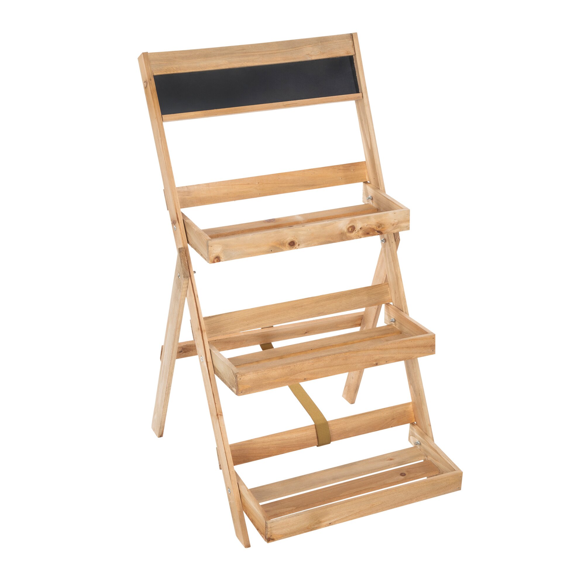 Unser Holz-Blumentreppe verleiht Ihrem Garten oder Ihrer Wohnung Ordnung und Stil. Ausgestattet mit einer Kreidetafel und drei Fächern ist es nicht nur dekorativ, sondern auch äußerst praktisch für Ihre Blumen und Kräuter. Trotz seiner platzsparenden Bauweise bietet es eine maximale Belastbarkeit von 4 kg und sorgt somit für eine sichere Präsentation Ihrer grünen Schätze.