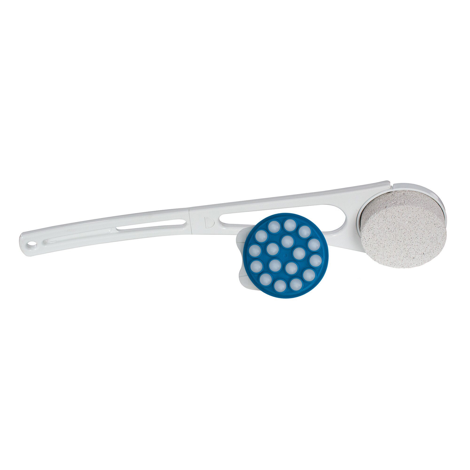 Mit Bimsstein und CremekopfEine Ergänzung unseres breiten Rückencremer SortimentsHornhaut entfernen – effektiv und mühelosDie helfende Hand beim Eincremen des RückensBimssteinZur Entfernung von verhornter Haut an den Füßen durch sanftes ReibenEntfernt nur die oberen Hautschichten, sodass keine gesunde Haut verletzt wird Nass und trocken einsetzbarNach der Anwendung mit warmen Wasser abspülen