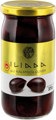 Iliada Griechische Kalamata-Oliven schwarz, mit Kern, 215g Griechische g.U Kalamata Oliven mit Kern Netto Füllmenge Abtropfgewicht 215.00 Gramm,Nettogehalt 370.00 Gramm,Bruttogewicht 584.00 Gramm Allergene Aufbewahrung Kühl und trocken lagern. Nach dem Öffnen im Kühlschrank aufbewahren und innerhalb von einer Woche aufbrauchen. Zutaten Zutaten:Kalamata Oliven, Wasser, Salz, Weinessig Nährwerte pro 100g Unzubereitet 100 Gramm, Energie 240,00 kcal, Energie 990,00 kJ, Fett 25,30 g, davon gesättigte Fettsäuren 3,70 g, Kohlenhydrate 0,20 g, davon Zucker 0,00 g, Ballaststoffe 3,50 g, Eiweiß 1,30 g, Salz 4,00 g Ursprungsland GRIECHENLAND Marke ILIADA Hersteller Name: AGRO.VI.M S.A.,Adresse: POB 134, Kalamata, 24100 Griechenland
