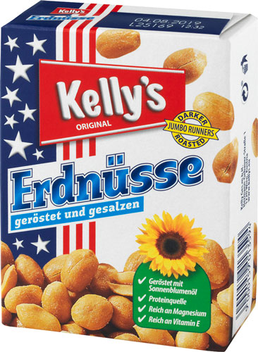 Erdnüsse, geröstet, gesalzen Netto Füllmenge Nettogehalt 40.00 Gramm,Bruttogewicht 41.00 Gramm Allergene Enthält – Ist im Produkt enthalten Nüsse und Nusserzeugnisse. Kann Mandeln, Haselnüsse, Walnüsse, Cashewnüsse etc. einschliessen,Erdnüsse und -erzeugnisse Zutaten Zutaten: ERDNÜSSE, 3% Sonnenblumenöl, Salz. Enthält Spuren von SCHALENFRÜCHTEN. Nährwerte pro 100g Unzubereitet 100 Gramm, Energie 2.562,00 kJ, Energie 619,00 kcal, Fett 51,00 g, davon gesättigte Fettsäuren 7,80 g, Kohlenhydrate 11,00 g, davon Zucker 5,20 g, Ballaststoffe 8,20 g, Eiweiß 24,40 g, Salz 1,00 g, Magnesium 176,00 mg, Vitamin E 7,80 mg Ursprungsland Europäische Union Marke KELLYS Hersteller Name: Kelly Ges.m.b.H.,Adresse: Hermann-Gebauer-Straße 1 1220 Wien, Austria,Webseite: www.kellys.eu