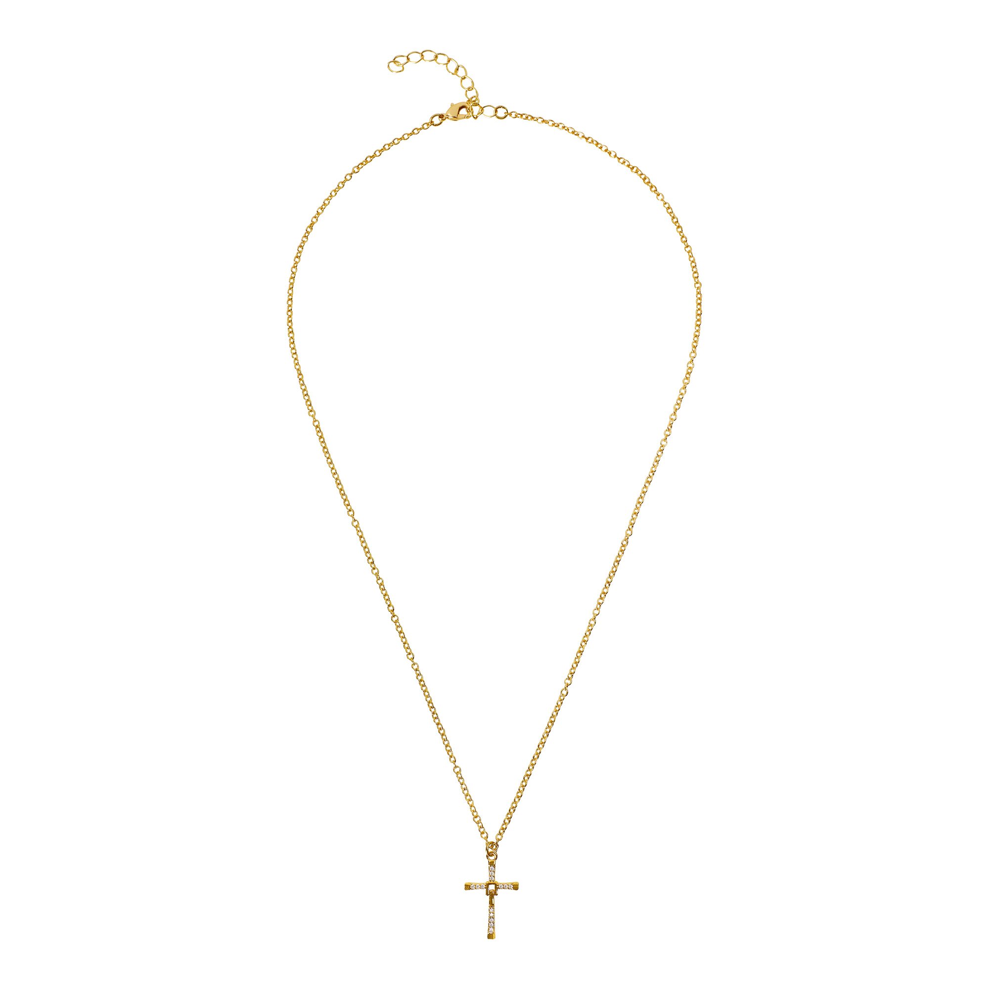 Hohe Symbolkraft! Kettenlänge: 45 cm Ob als liebevoll ausgesuchtes Geschenk zur Kommunion, Konfirmation oder einfach als bedeutungsvolles Schmuckstück: der filigrane, goldfarbene und im unteren Teil bewegliche Anhänger in Form eines Kreuzes ist mit glitzernden Strasssteinchen besetzt und wirkt überaus edel. Die dazugehörige Kette ist 45 cm lang und kann um weitere 6 cm verlängert werden, ganz nach Belieben. Hohe Symbolkraft! Kettenlänge: 45 cm Ob als liebevoll ausgesuchtes Geschenk zur Kommunion, Konfirmation oder einfach als bedeutungsvolles Schmuckstück: der filigrane, goldfarbene und im unteren Teil bewegliche Anhänger in Form eines Kreuzes ist mit glitzernden Strasssteinchen besetzt und wirkt überaus edel. Die dazugehörige Kette ist 45 cm lang und kann um weitere 6 cm verlängert werden, ganz nach Belieben.