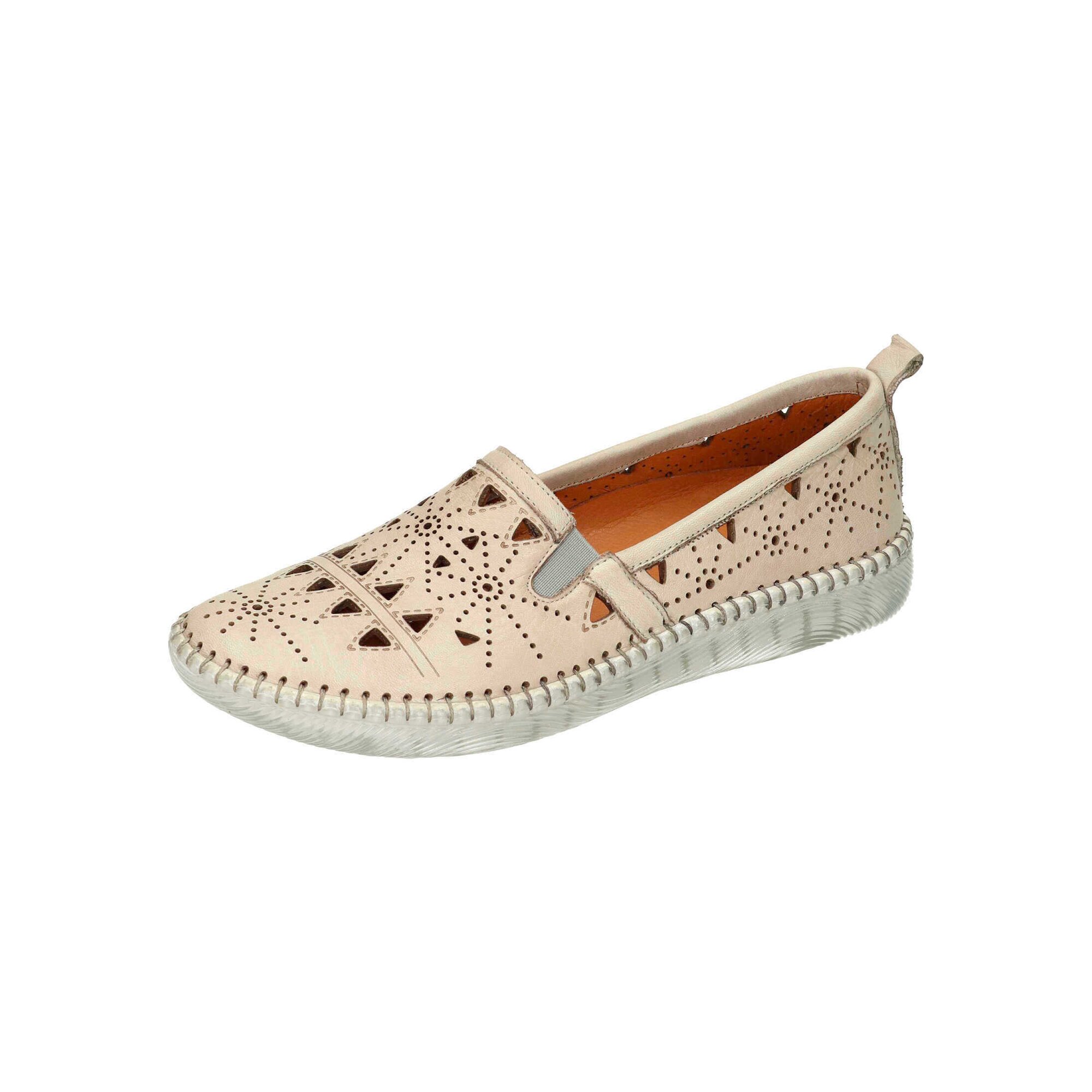 beige, Leder/Gummizug, Lederfutter, herausnehmbare, gepolsterte Lederdecksohle, Gummisohle – Schuhweite: normal –
