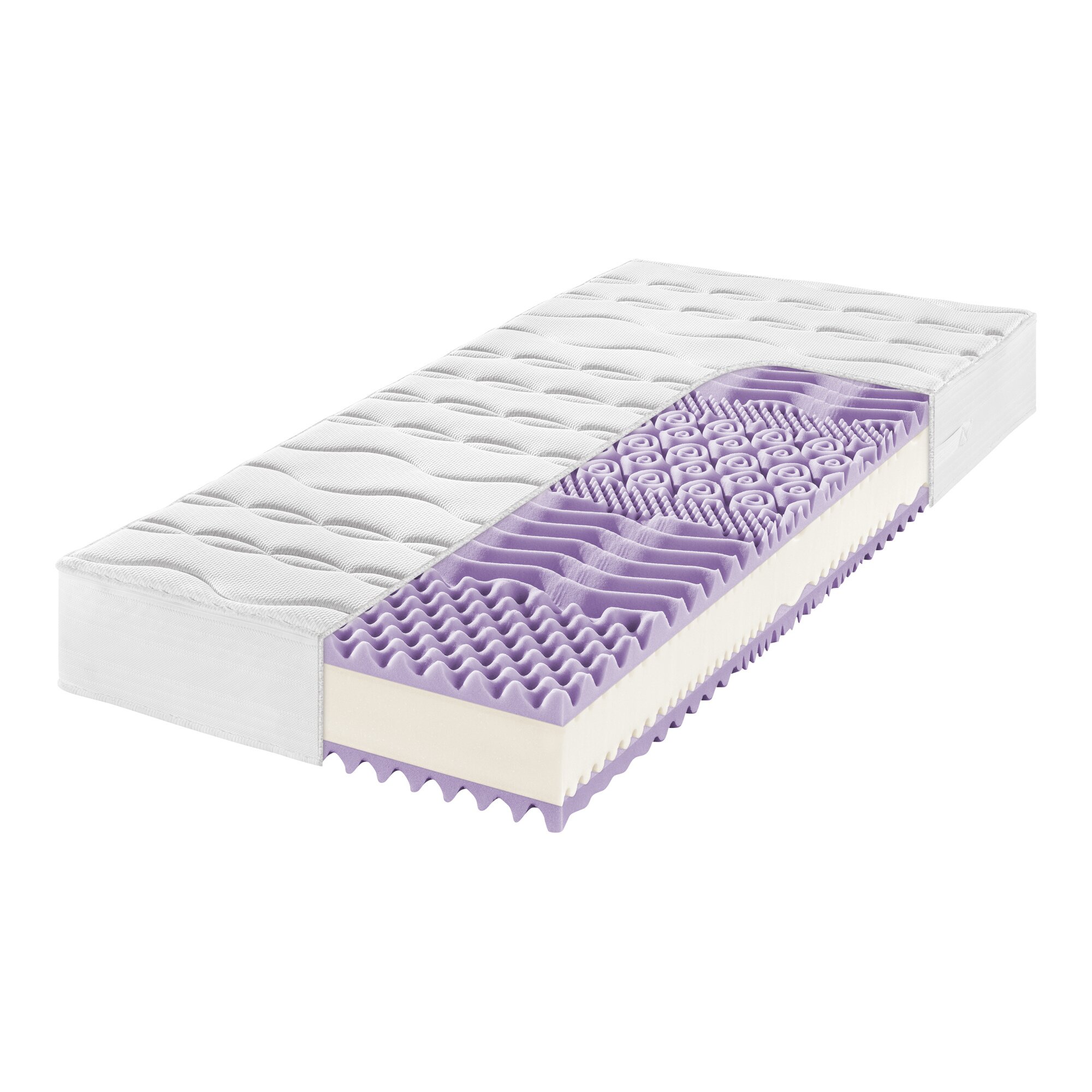 7-Zonen-Pori-cel®-Schaumkern-Matratze7-Zonen-Pori-cel ® Auflage für optimale Körperanpassung und Druckentlastung. Diese verfügt über eine sehr offene Zellstruktur und sorgt für eine bessere Luftzirkulation. Die hervorragende Stützkraft und Rückfederung sorgen für eine ausgezeichnete Haltbarkeit. Hochwertiger Komfortschaumkern zur perfekten Unterstützung. Die temperaturausgleichende Füllung Cell Solution® kann für optimalen Schlafkomfort sorgen. Körperwärme kann aufgenommen werden und bei Abkühlung des Körpers wieder an den Schläfer abgegeben werden. Hoher Hygienekomfort durch den hochwertigen Doppeljersey-Bezug. Zusätzlich mit Abstandsgewirke zur optimalen Belüftung. Mit Komfortschaum abgesteppt für optimale Körperanpassung. Härtegrad: H2 – mittel, für Menschen bis ca. 85 kg
