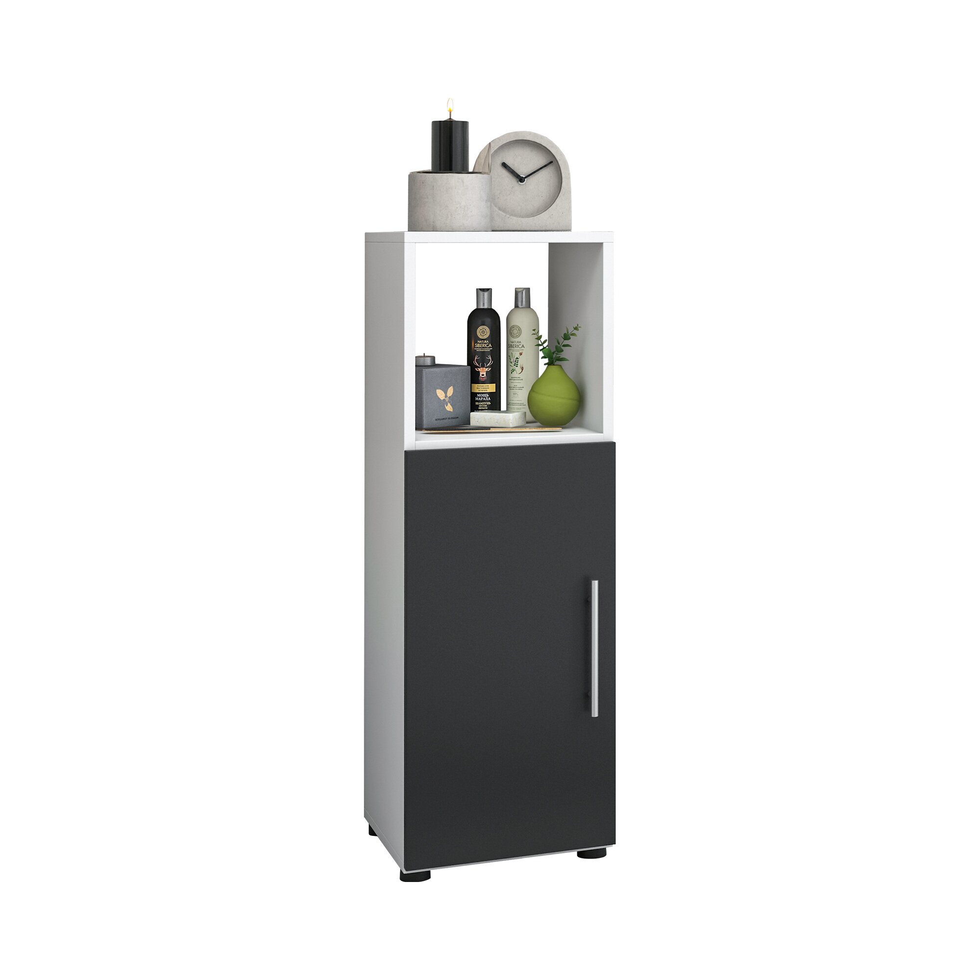 Der Midischrank ist ebenso edel wie praktisch – und das zu einem sagenhaften Preis! Dank des minimalistisch modernen Looks wirkt Ihr Badezimmer wie direkt aus der exklusiven Wohnzeitschrift. Holzstruktur-Nachbildung. Lieferung erfolgt zerlegt. Inkl. Montagematerial und einfacher Aufbauanleitung. mit offenem Regalfach große Tür 1 variabler Fachbode Maße: 31 x 93 x 30 cm