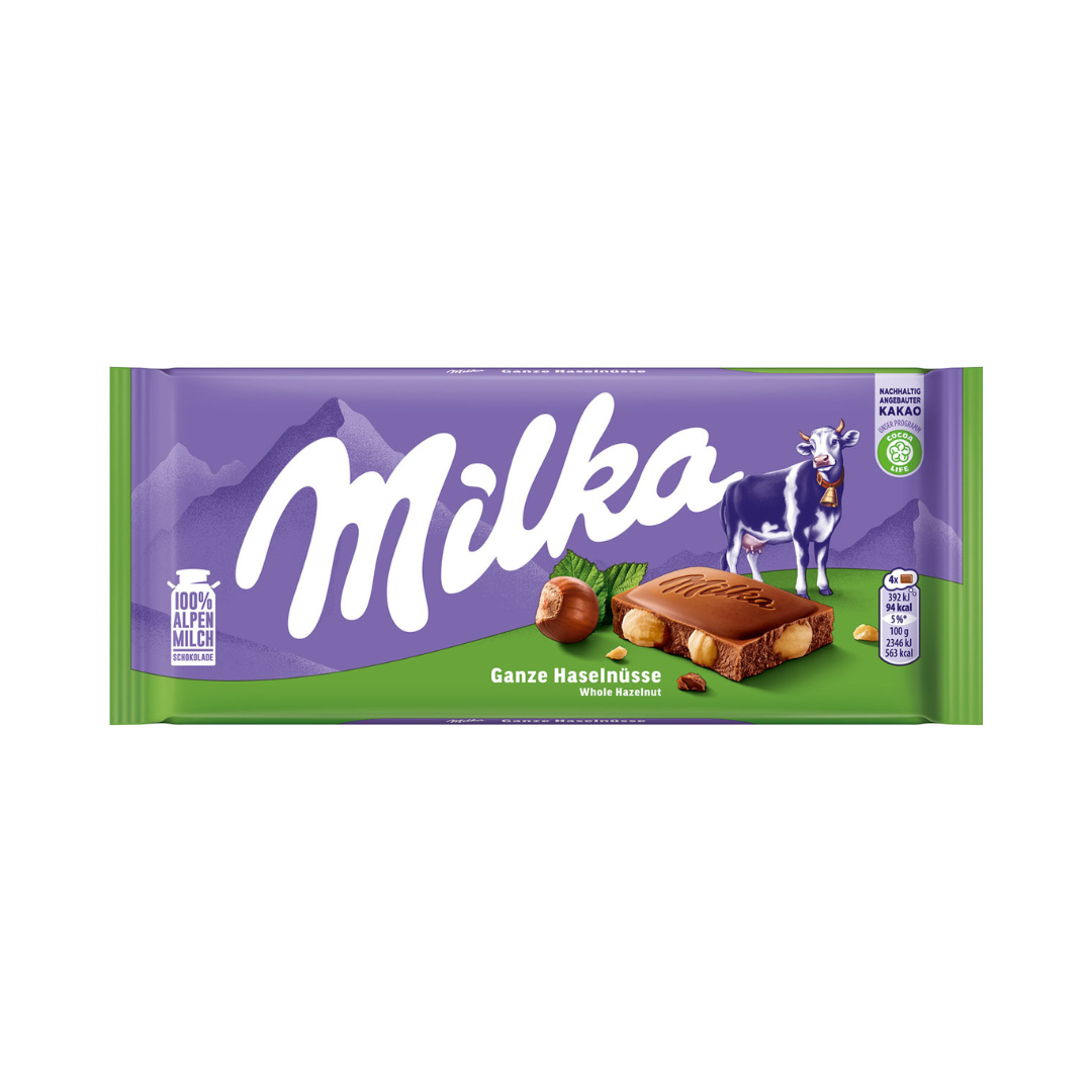Milka Ganze Haselnüsse, 100g Der köstliche Schokoladengenuss aus zartschmelzender Milka Alpenmilch Schokolade und ganzen Haselnüssen. Alpenmilch Schokolade mit ganzen Haselnüssen. Kakao: 30% mindestens in der Alpenmilch Schokolade. Netto Füllmenge Nettogehalt 100.00 Gramm,Bruttogewicht 102.00 Gramm Allergene HASELNÜSSE, MAGERMILCHPULVER, MILCH, BUTTERREINFETT, SOJALECITHINE, HASELNUSSMASSE Kann Spuren enthalten von Glutenhaltiges Getreide sowie daraus hergestellte Erzeugnisse,Enthält – Ist im Produkt enthalten Sojabohnen und -erzeugnisse,Nüsse und Nusserzeugnisse. Kann Mandeln, Haselnüsse, Walnüsse, Cashewnüsse etc. einschliessen,Milch und Milcherzeugnisse Aufbewahrung Trocken lagern und vor Wärme schützen. Zutaten Zutaten: Zucker, HASELNÜSSE (20%), Kakaobutter, MAGERMILCHPULVER, Kakaomasse, Süßmolkenpulver (MILCH), BUTTERREINFETT, Emulgator (SOJALECITHINE), HASELNUSSMASSE, Aroma. KANN ANDERE NÜSSE UND WEIZEN ENTHALTEN. Nährwerte pro 100g Unzubereitet 1 Portion, Energie 387,00 kJ, Energie 93,00 kcal, Fett 6,00 g, davon gesättigte Fettsäuren 2,50 g, Kohlenhydrate 8,10 g, davon Zucker 7,90 g, Ballaststoffe 0,60 g, Eiweiß 1,30 g, Salz 0,05 g , Unzubereitet 100 Gramm, Energie 2.316,00 kJ, Energie 556,00 kcal, Fett 36,00 g, davon gesättigte Fettsäuren 15,00 g, Kohlenhydrate 49,00 g, davon Zucker 47,00 g, Ballaststoffe 3,30 g, Eiweiß 8,10 g, Salz 0,30 g Gütezeichen Kakao: 30% mindestens in der Alpenmilch Schokolade. Ursprungsland DEUTSCHLAND, BUNDESREPUBLIK Marke MILKA Hersteller Name: Mondelez Österreich GmbH,Adresse: Schönbrunner Strasse 297-307 A-1120 Wien