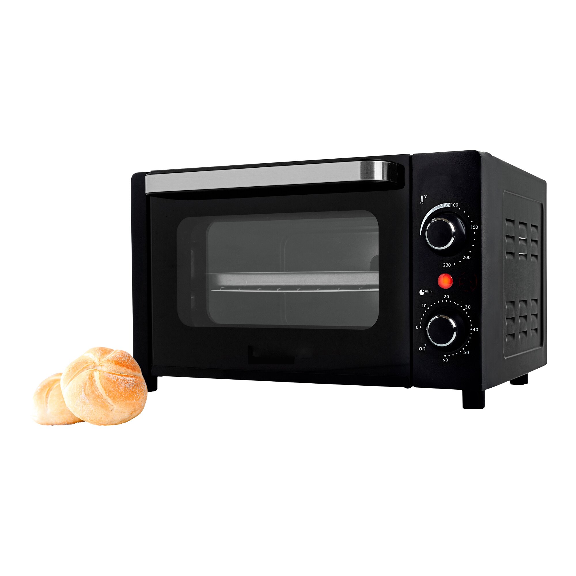 Unser kompakter Mini-Backofen ist ein echtes Raum- und Energiewunder! Ideal für schnelle Mahlzeiten oder Single-Haushalte. Mit 1.050 W-Leistung erreicht er bis zu +230 °C. Ausgestattet mit einem praktischen 60 Minuten-Timer, Aluminium-Backblech, Edelstahl-Heizelementen und Doppelglastür.Er spart Platz in Ihrer Küche und dennoch überzeugt er mit großer Leistung. Ob Backen, Grillen oder Aufwärmen – dieser Mini-Backofen bietet vielseitige Möglichkeiten. Genießen Sie köstliche Mahlzeiten in kürzester Zeit. Holen Sie sich jetzt Ihren kleinen Helfer, der Ihnen gehörig einheizt!