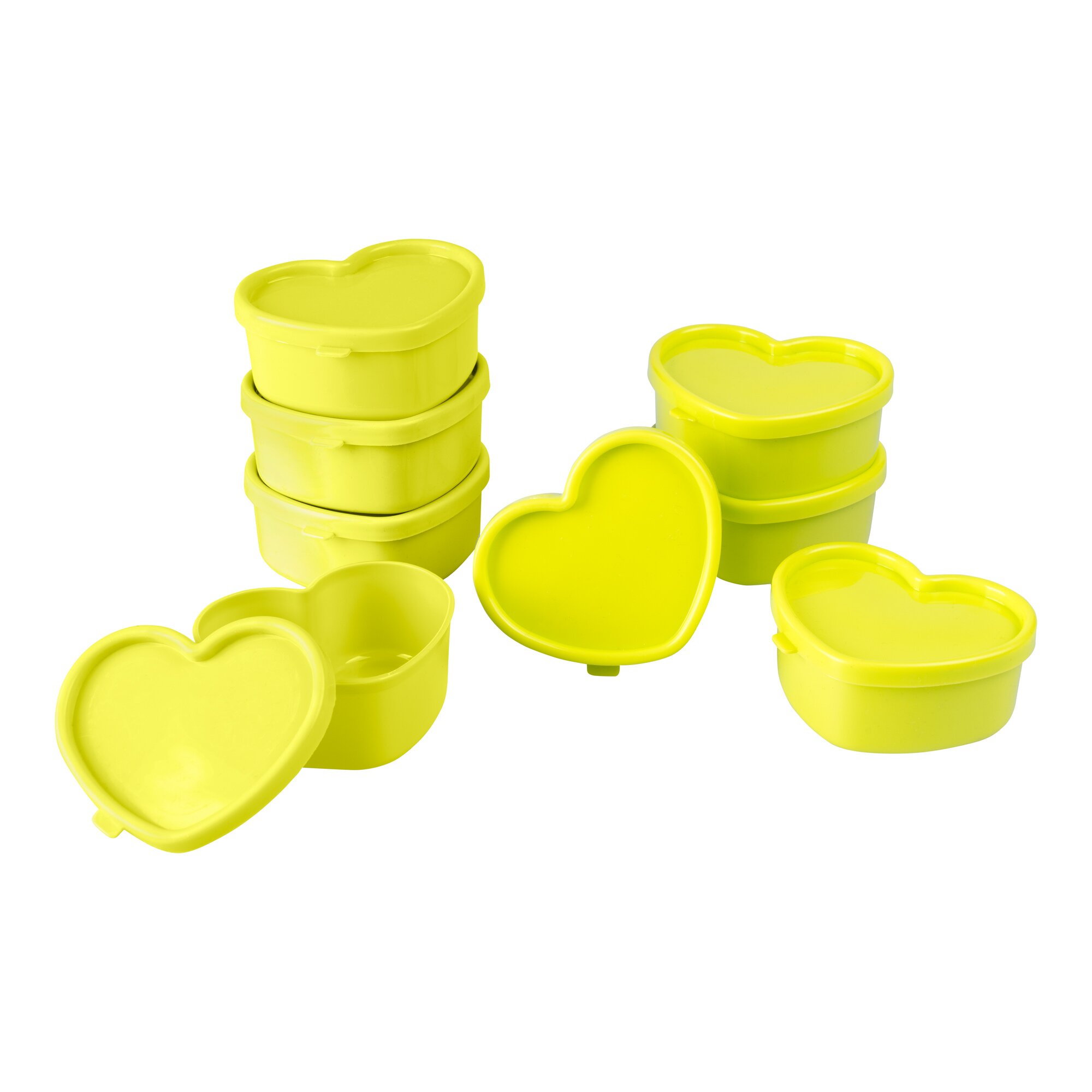 Unsere Mini-Dosen sind ideal für Dips, Gewürze und Snacks. Die süße Herzform verleiht jedem Tisch eine besondere Note, während der Deckel den Inhalt lange frisch hält. Perfekt für zu Hause oder unterwegs.