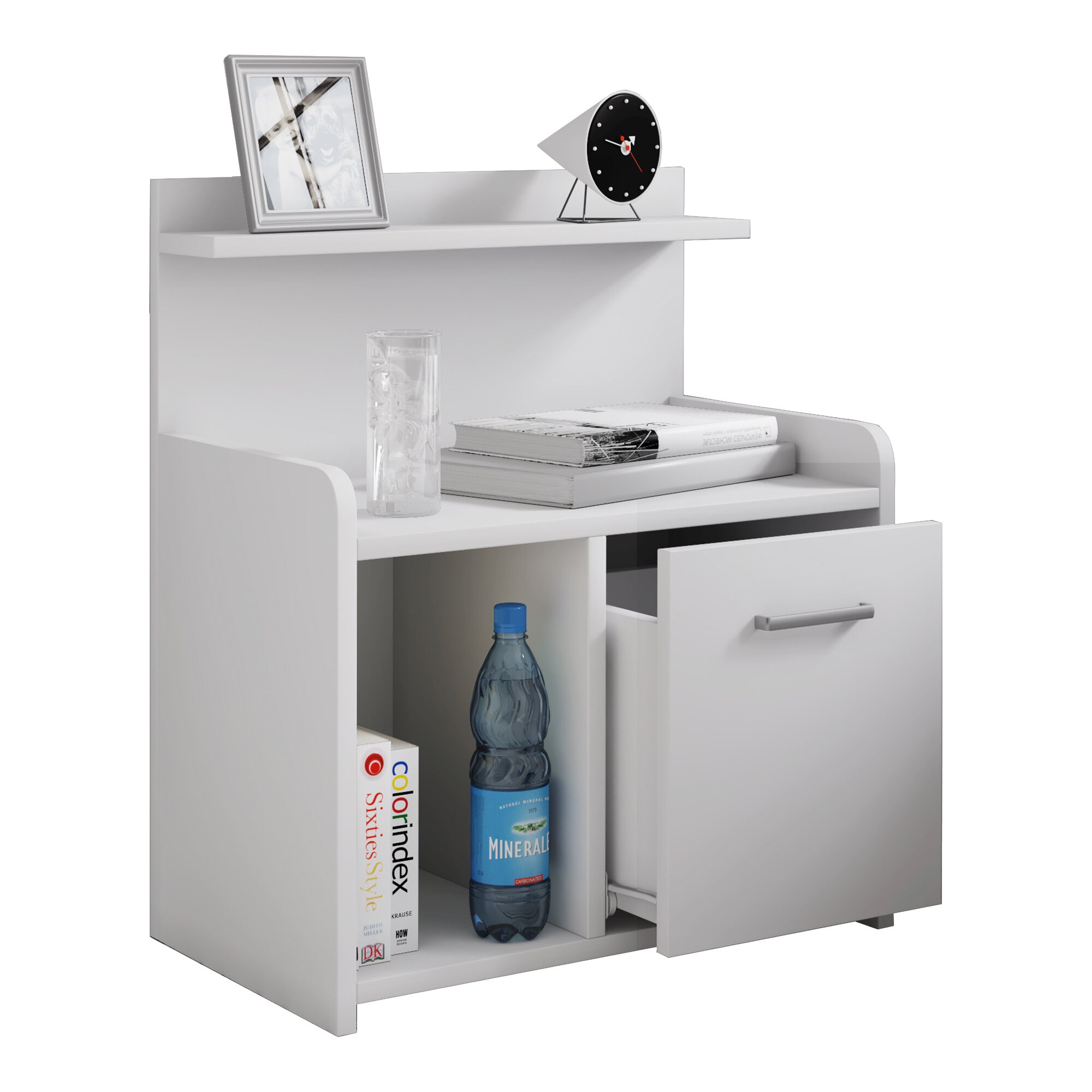 Highlights: Leichtgängige Schublade. Ein großes offenes Fach. Zwei offene Ablageflächen. Holzstruktur-Nachbildung. Mit dem VCM Nachttisch „Nilasa“ herrscht auch im Schlafzimmer immer Ordnung und Sie haben am Bett alles griffbereit, was Sie zum Entspannen brauchen. Der Beistelltisch ist in Holzstruktur-Nachbildung. Ein besonderes Highlight ist die Schublade ohne sichtbaren Griff, was das Möbel besonders modern und zeitlos wirken lässt. Die Liebe zum Detail macht ein VCM Möbel zu etwas ganz Besonderem.