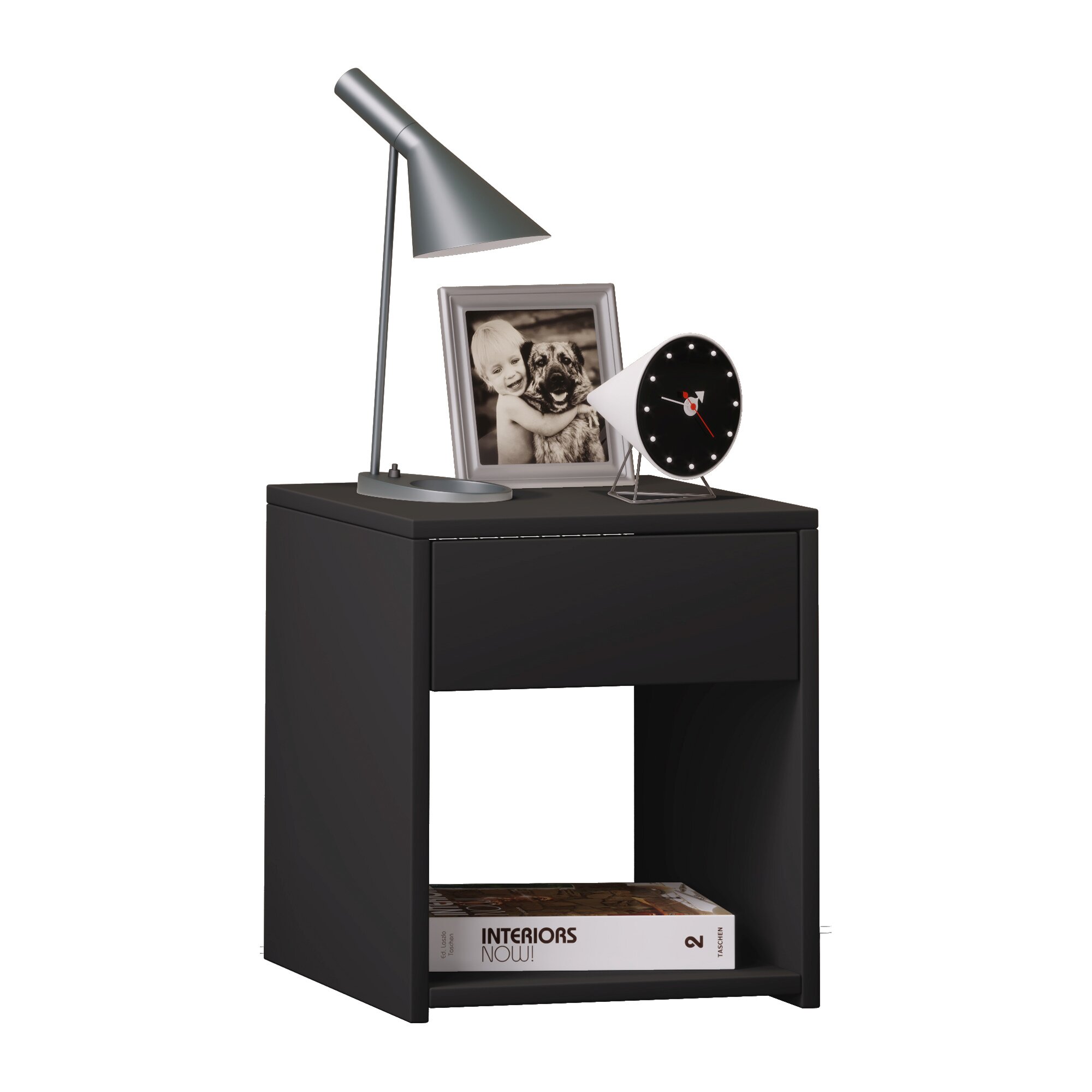 Highlights: Leichtgängige Schublade. Offene Fächer für viel Staufläche. Holzstruktur-Nachbildung. Schublade ohne sichtbaren Griff für eine moderne und zeitlose Optik.