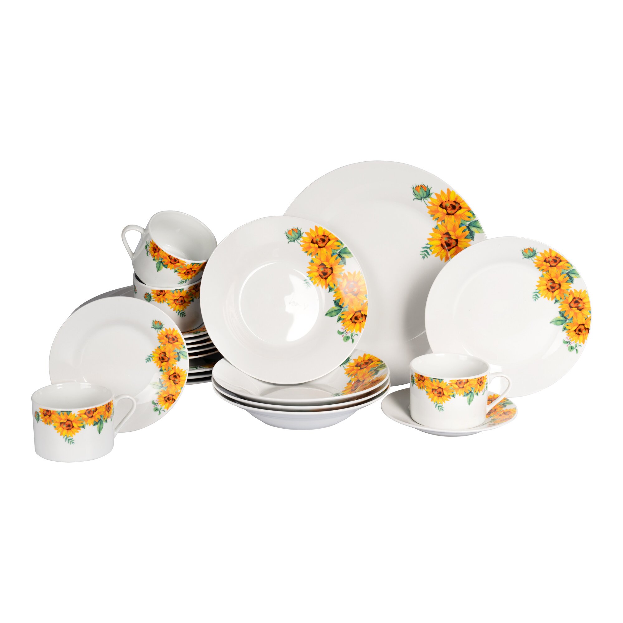 Unser Tafelservice ist nicht nur ein kulinarisches Erlebnis, sondern auch ein visuelles Fest für Sie und Ihre Gäste! Mit seinem sommerlich-leichten Design und der leicht schimmernden Oberfläche bringt es Eleganz und Frische auf Ihren Tisch. Genießen Sie Ihre Mahlzeiten in bester Qualität und lassen Sie sich von diesem charmanten Service verzaubern. Inhalt: 4 Tassen, 4 Untertassen, 4 Dessertteller, 4 Speiseteller und 4 Suppenteller