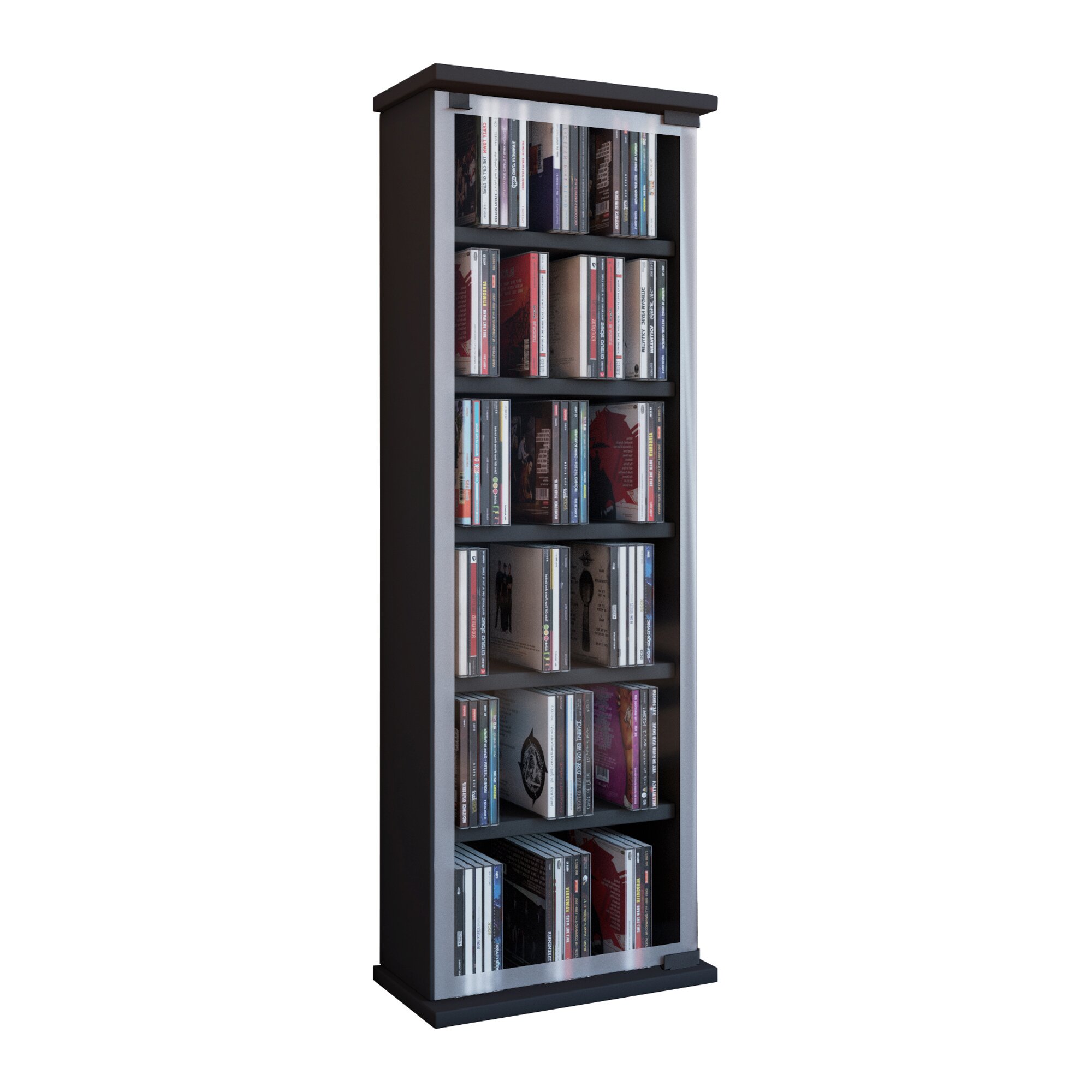 VCM CD/DVD Möbel „Classic“ mit einer ESG-Sicherheitsglastür. Die Glastür ist durch keramisches Druckverfahren mit einer hochwertigen Bedruckung versehen. 5 variable Einlegeböden bieten Archivierungsmöglichkeiten für 150 CDs oder 65 DVDs oder 36 Videos. Holzstruktur-Nachbildung.