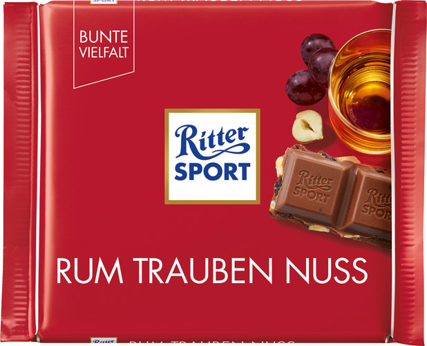 Vollmilchschokolade mit Sultaninen (13 %) eingelegt in Rum (2 %) und Haselnuss-Stückchen (5,5 %). Kakao: 30 % mindestens im Schokoladenanteil. Kakao: 30 % mindestens im Schokoladenanteil. Netto Füllmenge Bruttogewicht 101.00 Gramm,Nettogehalt 100.00 Gramm Allergene Kann Spuren enthalten von Eier und -erzeugnisse,Glutenhaltiges Getreide sowie daraus hergestellte Erzeugnisse,Erdnüsse und -erzeugnisse,Enthält – Ist im Produkt enthalten Sojabohnen und -erzeugnisse,Nüsse und Nusserzeugnisse. Kann Mandeln, Haselnüsse, Walnüsse, Cashewnüsse etc. einschliessen,Milch und Milcherzeugnisse Aufbewahrung Vor Wärme und Feuchtigkeit schützen. Zutaten Zutaten: Zucker, Kakaobutter, Sultaninen, Kakaomasse, VollMILCHpulver, HASELNÜSSE, LAKTOSE, MagerMILCHpulver, BUTTERreinfett, Rum, Emulgator: Lecithine (SOJA). Kann Spuren von Erdnüssen, anderen Schalenfrüchten, glutenhaltigem Getreide und Ei enthalten. Alkoholhaltig! Nährwerte pro 100g Unzubereitet 100 Gramm, Energie 2.179,00 kJ, Energie 522,00 kcal, Fett 28,00 g, davon gesättigte Fettsäuren 15,00 g, Kohlenhydrate 56,00 g, davon Zucker 54,00 g, Eiweiß 6,30 g, Salz 0,15 g Gütezeichen Kakao: 30 % mindestens im Schokoladenanteil. Ursprungsland DEUTSCHLAND, BUNDESREPUBLIK Marke RITTER SPORT Hersteller Name: Alfred Ritter GmbH & Co. KG,Adresse: D-71111 Waldenbuch Deutschland