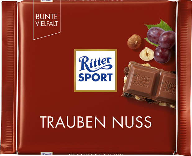 Vollmilchschokolade mit Sultaninen (16 %) und Haselnuss-Stückchen (7 %). Kakao: 30 % mindestens im Schokoladenanteil. Kakao: 30 % mindestens im Schokoladenanteil. Netto Füllmenge Nettogehalt 100.00 Gramm,Bruttogewicht 101.00 Gramm Allergene Kann Spuren enthalten von Eier und -erzeugnisse,Glutenhaltiges Getreide sowie daraus hergestellte Erzeugnisse,Erdnüsse und -erzeugnisse,Enthält – Ist im Produkt enthalten Sojabohnen und -erzeugnisse,Nüsse und Nusserzeugnisse. Kann Mandeln, Haselnüsse, Walnüsse, Cashewnüsse etc. einschliessen,Milch und Milcherzeugnisse Aufbewahrung Vor Wärme und Feuchtigkeit schützen. Zutaten Zutaten: Zucker, Sultaninen, Kakaobutter, Kakaomasse, VollMILCHpulver, HASELNÜSSE, LAKTOSE, MagerMILCHpulver, BUTTERreinfett, Emulgator: Lecithine (SOJA). Kann Spuren von Erdnüssen, anderen Schalenfrüchten, glutenhaltigem Getreide und Ei enthalten. Nährwerte pro 100g Unzubereitet 100 Gramm, Energie 2.172,00 kJ, Energie 520,00 kcal, Fett 28,00 g, davon gesättigte Fettsäuren 15,00 g, Kohlenhydrate 57,00 g, davon Zucker 55,00 g, Eiweiß 6,50 g, Salz 0,14 g Gütezeichen Kakao: 30 % mindestens im Schokoladenanteil. Ursprungsland DEUTSCHLAND, BUNDESREPUBLIK Marke RITTER SPORT Hersteller Name: Alfred Ritter GmbH & Co. KG,Adresse: D-71111 Waldenbuch Deutschland