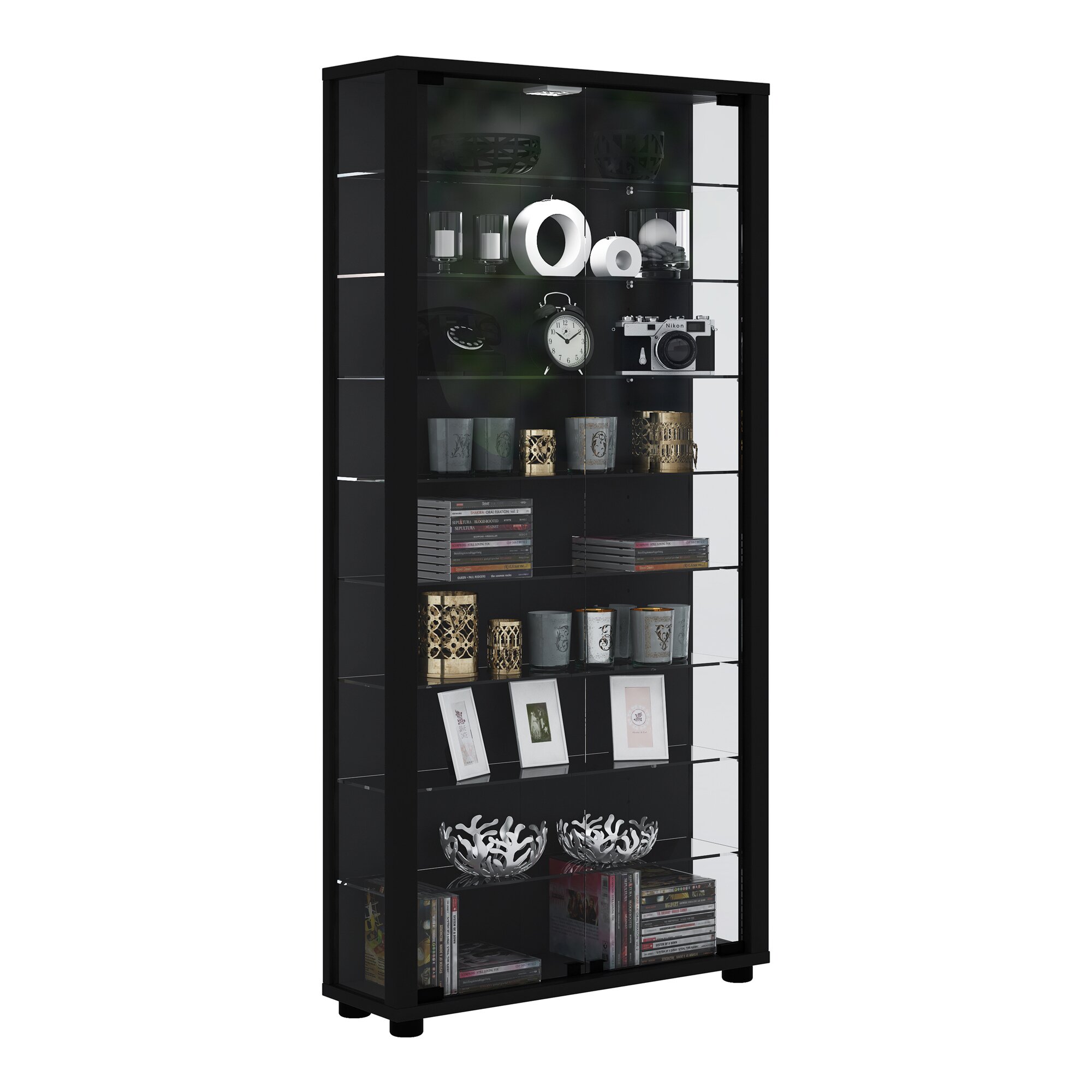 VCM Standvitrine „Lumo Maxi“ für Sammlerschätze wie Modellautos, Figuren, Züge, Kosmetik, Kristalle, Uhren, Muscheln etc. Universell einsetzbar. Die Glas-Vitrine beinhaltet 8 variable Glas-Einlegeböden und 2 Türen aus ESG-Sicherheitsglas. Mit 4 Standfüßen. Einfache Montage. Holzstruktur-Nachbildung. Die Lieferung erfolgt zerlegt inkl. Montageanleitung und Montagematerial.