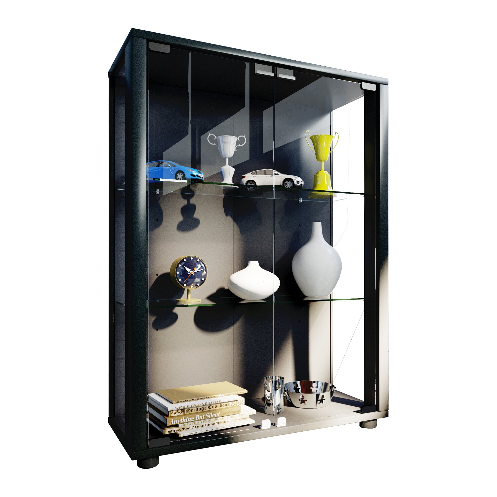 VCM Standvitrine „Sintalo“ für Sammlerschätze wie Modellautos, Figuren, Züge, Kosmetik, Kristalle, Uhren, Muscheln etc. Universell einsetzbar. Die Glas-Vitrine beinhaltet 2 variable Glas-Einlegeböden und 2 Türen aus ESG-Sicherheitsglas; Einfache Montage. Die Lieferung erfolgt zerlegt inkl. Montageanleitung und Montagematerial. Holzstruktur-Nachbildung.