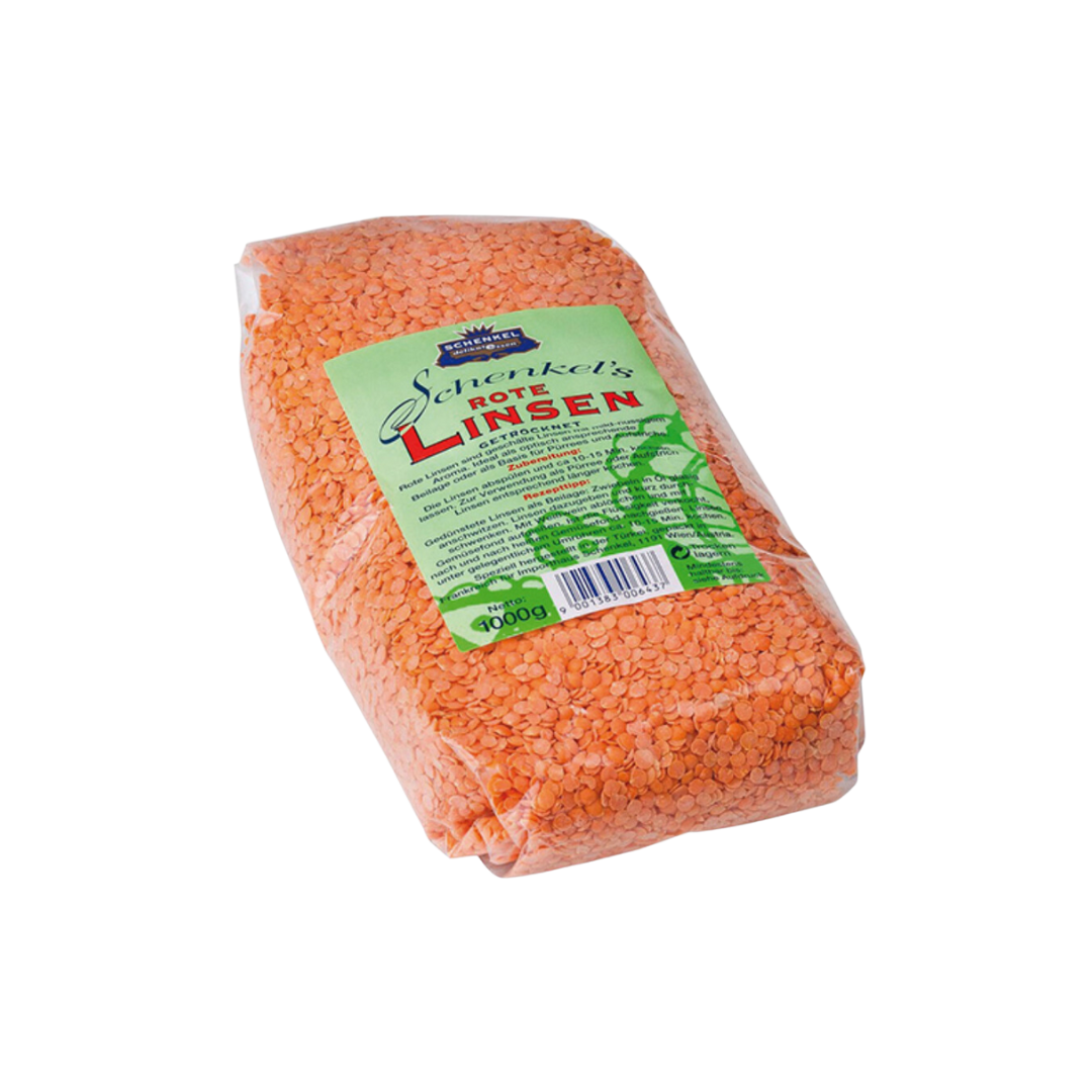 Schenkel Rote Linsen, getrocknet, 1kg Entdecken Sie die köstlichen roten Linsen von Schenkel – ideal für eine nahrhafte und sättigende Mahlzeit. Diese geschälten, getrockneten Linsen zeichnen sich durch eine mehlige Konsistenz und ein mild-nussiges Aroma aus. Bestens für Pürees oder Aufstriche, oder als Beilage geeignet, ist das Produkt ein Muss in jeder Küche. In der Packung befinden sich 1 Kilo rote Linsen von höchster Qualität, sorgfältig verarbeitet und verpackt. Die Zubereitung ist kinderleicht: einfach die Linsen abspülen und ca. 10-15 Minuten in kochendem Wasser köcheln lassen. Für die Zubereitung von Pürees oder Aufstrichen empfehlen wir, die Linsen entsprechend länger zu kochen. Unsere roten Linsen sind eine hervorragende Quelle für Eiweiß, Ballaststoffe und Kohlenhydrate und bieten eine breite Palette an Nährstoffen für eine ausgewogene Ernährung. Sie sind zudem sehr vielseitig und können zu vielen verschiedenen Gerichten hinzugefügt werden, wie z.B. Salaten, Suppen, Eintöpfen oder Currys. Lassen Sie sich von unserem exklusiven Produkt inspirieren und verwöhnen Sie sich und Ihre Familie mit einem gesunden und leckeren Mahlzeit. Bestellen Sie jetzt und erleben Sie selbst den unvergleichlichen Geschmack und die zahlreichen Vorteile der roten Linsen von Schenkel. Rote Linsen getrocknet Rote Linsen sind geschälte Linsen von mehliger Konsistenz, mit mild-nussigem Aroma. Sie eignen sich ideal als Grundlage für Pürees oder Aufstriche. Netto Füllmenge Bruttogewicht 1005.00 Gramm,Nettogehalt 1000.00 Gramm Allergene Aufbewahrung Trocken lagern Nährwerte pro 100g Unzubereitet 100 Gramm, Energie 1.411,00 kJ, Energie 333,00 kcal, Fett 1,70 g, davon gesättigte Fettsäuren 0,20 g, Kohlenhydrate 50,00 g, davon Zucker 1,00 g, Eiweiß 24,00 g, Salz 0,01 g Ursprungsland FRANKREICH Verwendung Sieden – Zubereitung der Speise in kochendem Wasser Die Linsen abspülen und ca. 10-15 Min. köcheln lassen. Zur Verwendung als Püree oder Aufstrich Linsen entsprechend länger kochen. Hersteller Name: Importhaus Schenkel,Adresse: 1191 Wien/Austria,Email: info@schenkel.at