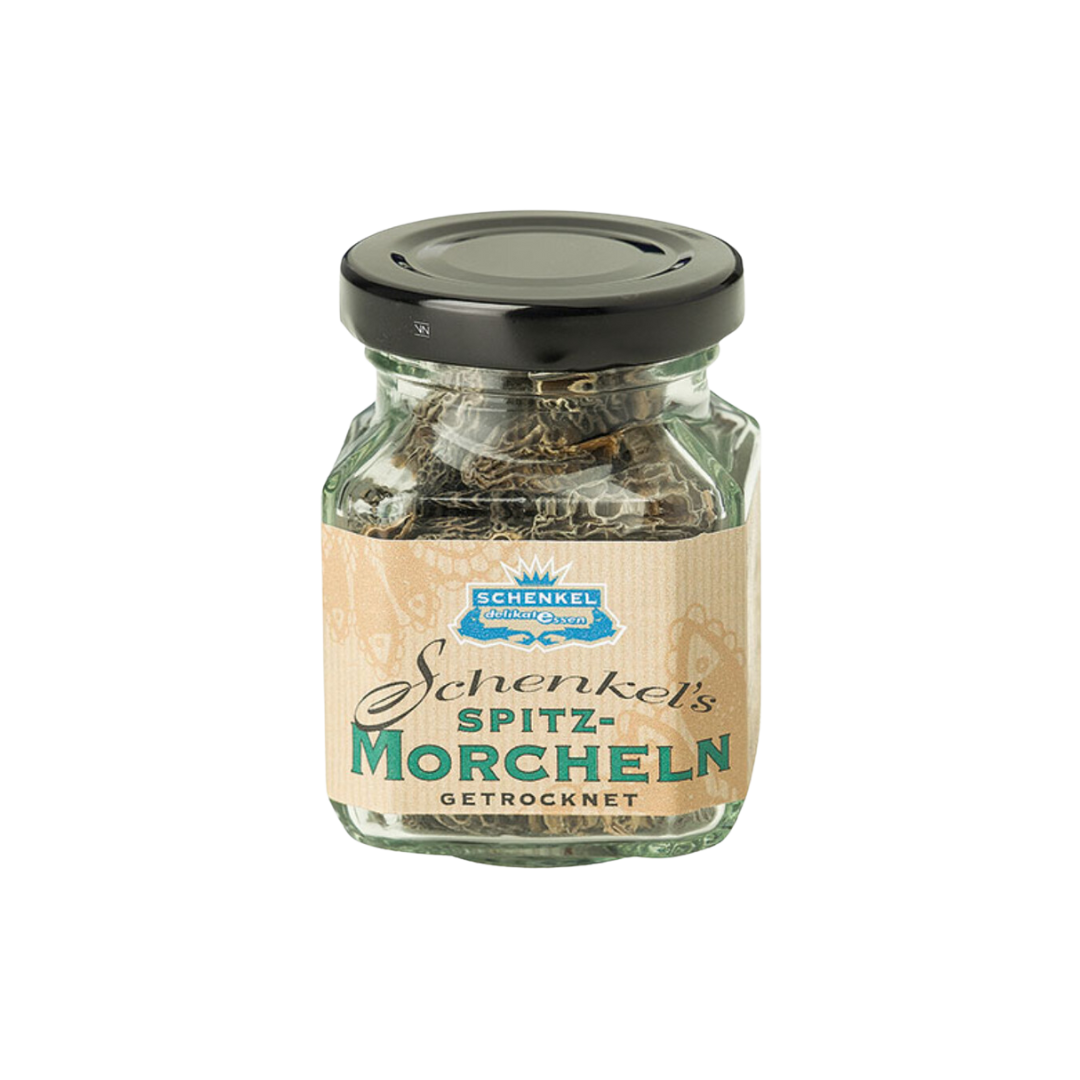 Schenkel Spitzmorcheln getrocknet Spitzmorcheln getrocknet Nach Trüffeln sind Morcheln die begehrtesten Pilze der internationalen Küche. Ihr feines Aroma veredelt alle Gerichte, die üblicherweise mit Pilzen zubereitet werden. Die Spitzmorcheln werden getrocknet, nach Größe sortiert und ohne Stiel (es wird nur das Hütchen verwendet) in formschöne Gläser gepackt. Netto Füllmenge Nettogehalt 20.00 Gramm,Bruttogewicht 153.00 Gramm Allergene Aufbewahrung Trocken lagern. Hersteller Name: Importhaus Schenkel,Adresse: Inkustr. 1-7, 3400 Klosterneuburg