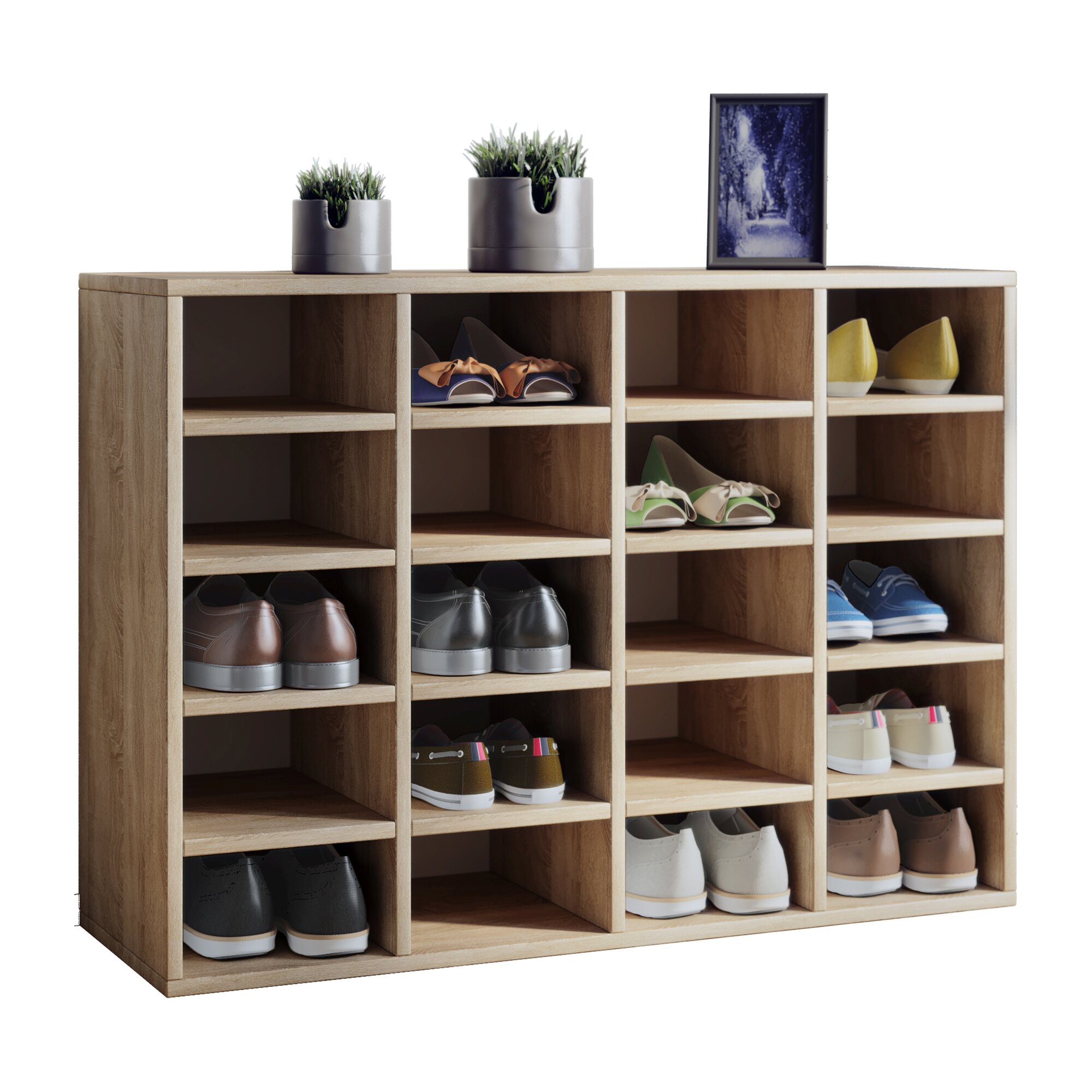 Highlights: Beschläge aus hochwertigem Metall. 20 geräumige Fächer für bis zu 20 Paar Schuhe. Der Schuhschrank „Hinsol L“ ist ein kleines Raumwunder. Das Möbel verbindet die Kombination aus Stauraum und Deko wie kaum ein anderes Möbelstück. 20 Fächer ermöglichen einen ordentlichen Stauraum für 20 Paar Schuhe oder andere Utensilien. Die Liebe zum Detail macht einen VCM Schuhschrank zu etwas ganz Besonderem. Maße pro Fach: ca. B. 21 x H. 12 x T. 33 cm